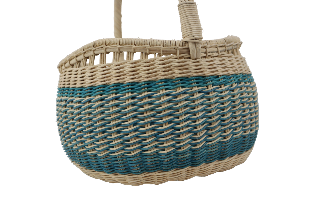 BAKUL YANG DIPERBUAT DARIPADA ROTAN PULUR DAN DILENGKAPI DENGAN TANGKAI,