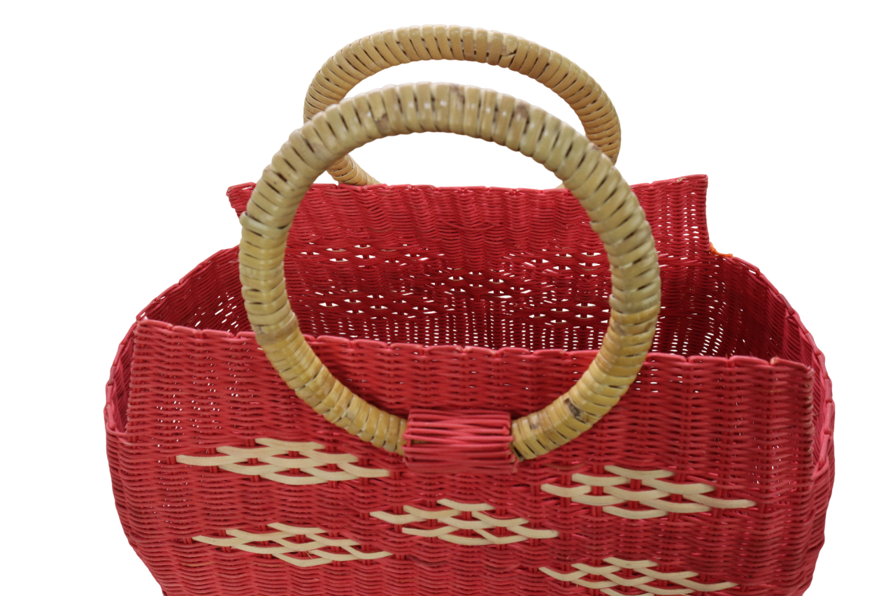 1. BAKUL YANG DIPERBUAT DARIPADA ROTAN PULUR DAN DILENGKAPI DENGAN TANGKAI, MEMPUNYAI CORAK DAN WARNA YANG MENARIK.