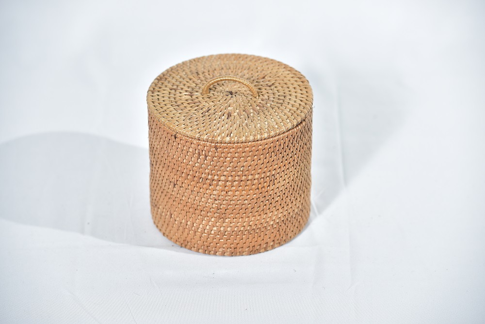 | 1.BEKAS SELAPA ANYAMAN RIBU-RIBU 2. BEKAS BERBENTUK BULAT DENGAN WARNA NATURAL RIBU-RIBU. 3. BEKAS YANG MEMPUNYAI PENUTUP. 4. DILENGKAPI DENGAN TANGKAI. |