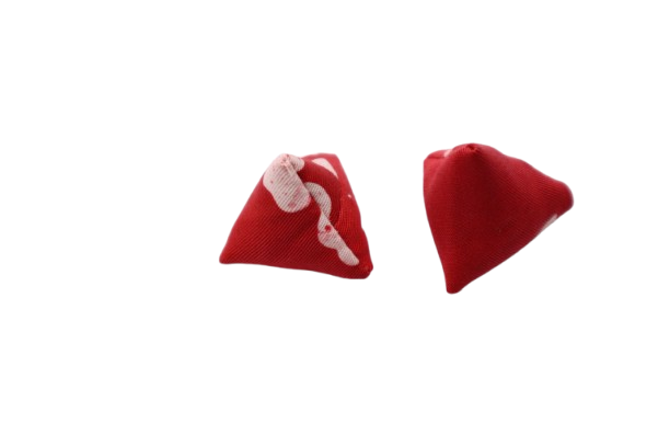 3. BATU SEREMBAN YANG BERBENTUK SEGITIGA DIHASILKAN DARIPADA BAHAN KAIN KAPAS BERCORAK BATIK. MOTIF BEBAS