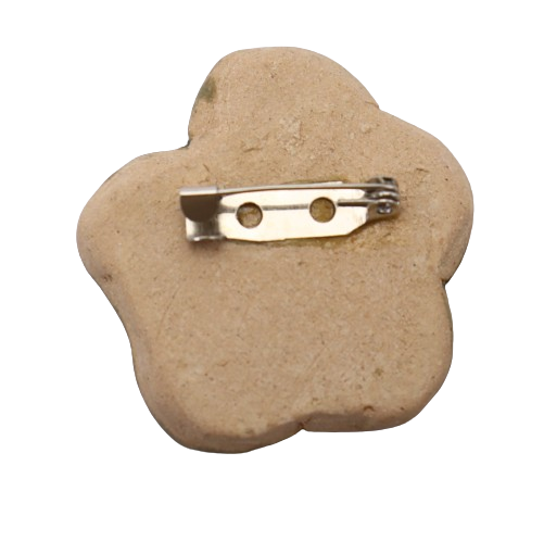 1. BAHAN DARI TANAH LIAT DIJADIKAN BROOCH BERBENTUK BUNGA DAN DIDATANGKAN DENGAN PIN