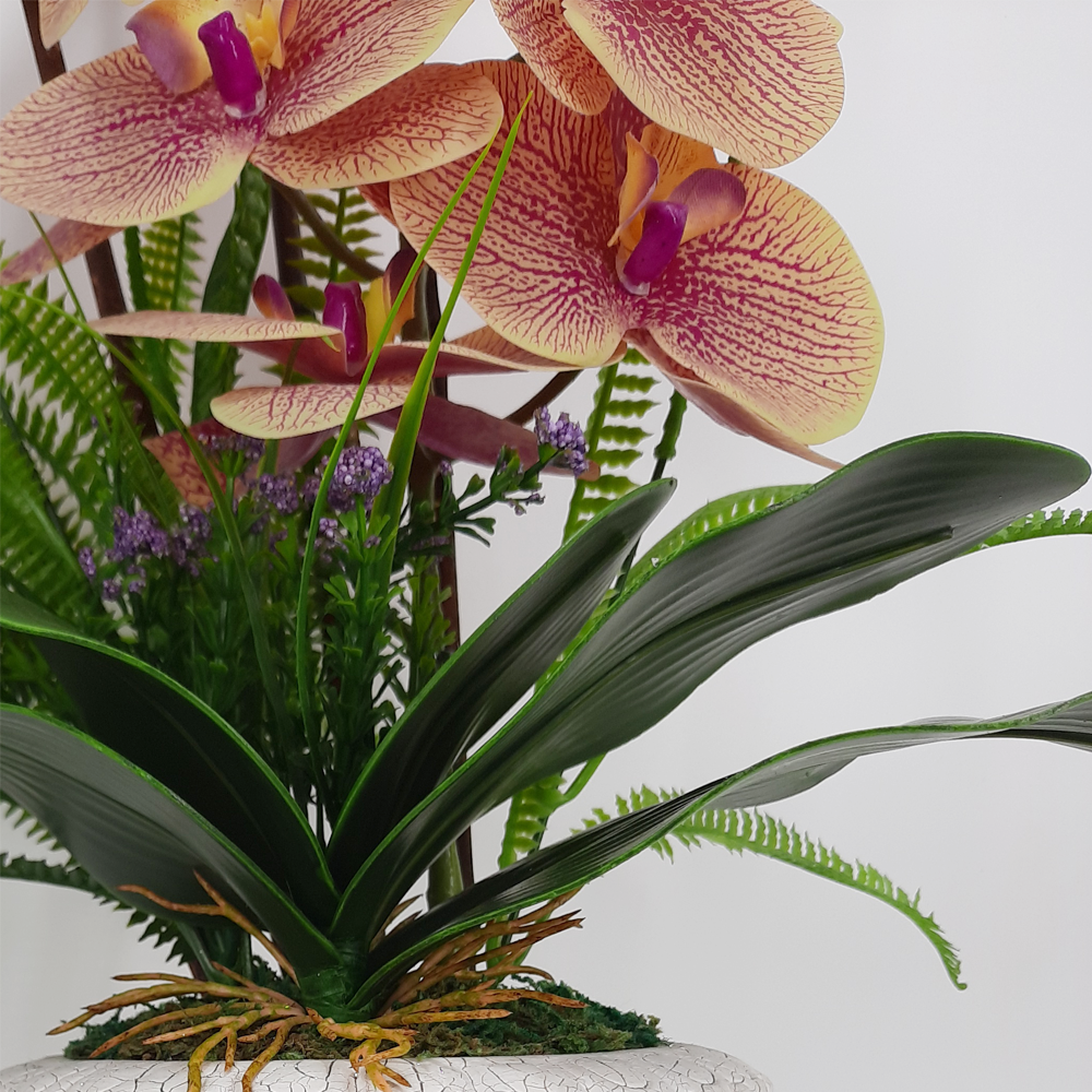 1) GUBAHAN BUNGA ORKID ARTIFICIAL 3D YANG TAMPAK REALISTIK DAN CANTIK (WARNA OREN) - SAIZ : 47CM (T) X 34CM (P) X 20CM (L)
