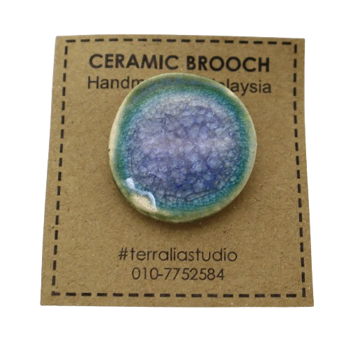 1. BAHAN DARI TANAH LIAT DIJADIKAN BROOCH BERBENTUK BULAT DAN DIDATANGKAN DENGAN PIN