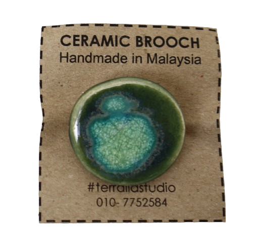 1. BAHAN DARI TANAH LIAT DIJADIKAN BROOCH BERBENTUK BULAT DAN DIDATANGKAN DENGAN PIN