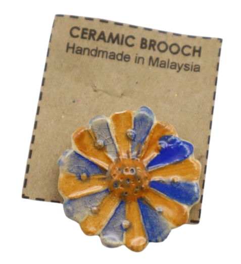 BAHAN DARI TANAH LIAT DIJADIKAN BROOCH BERBENTUK BUNGA DAN DIDATANGKAN DENGAN PIN. KEGUNAAN SEBAGAI BAHAN ALTERNATIF PENCANTUM TUDUNG DENGAN BAJU. BROOCH INI JUGA SEBAGAI AKSESORI KEPADA TUDUNG . SESUAI DIJADIKAN CENDERAMATA DAN HADIAH. SAIZ= LEBAR-3.5CM