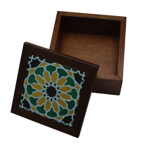 2. KOMBINASI KOTAK KAYU DAN TILES YANG DIUKIR DENGAN CORAK GEOMETRIK