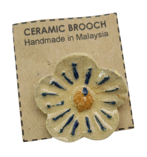 1. BAHAN DARI TANAH LIAT DIJADIKAN BROOCH BERBENTUK BUNGA DAN DIDATANGKAN DENGAN PIN