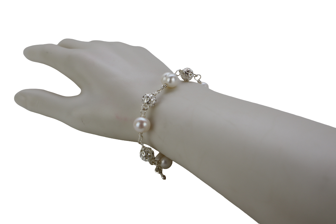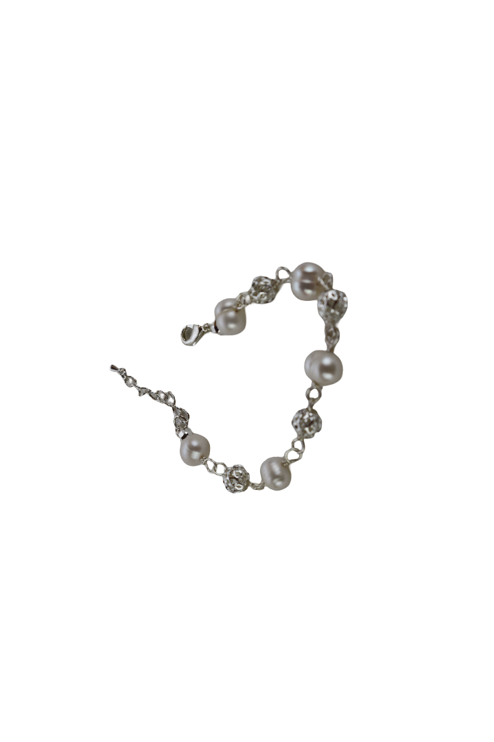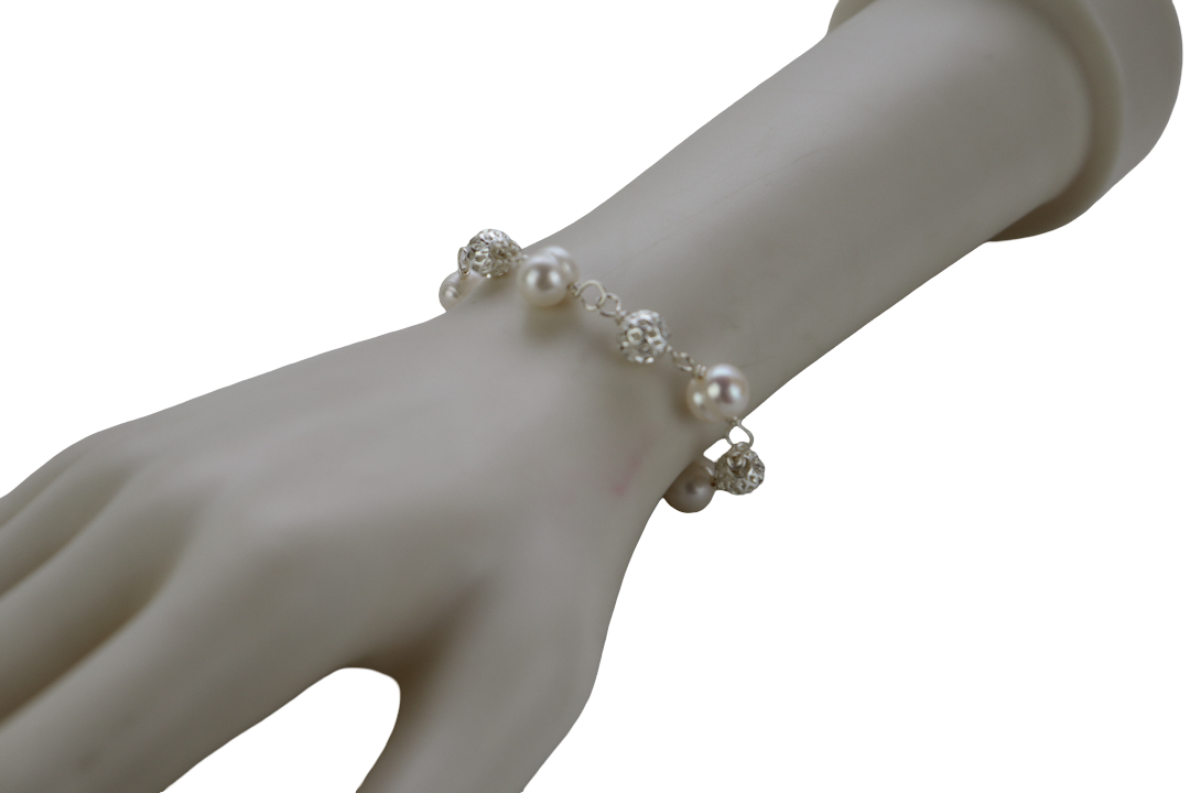 1. RANTAI TANGAN WANITA YANG DIPERBUAT DARI MUTIARA AIR MASIN/MANIK DENGAN KRISTAL BUJUR PUTIH