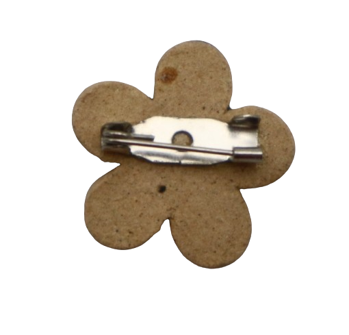 1. BAHAN DARI TANAH LIAT DIJADIKAN BROOCH BERBENTUK BUNGA DAN DIDATANGKAN DENGAN PIN