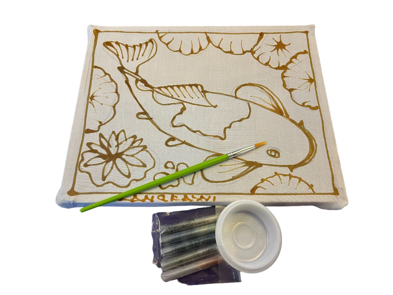 UNCOLOURED BATIK PAINTING, 01 CLOUR BRUSH, 04 PACK BATIK COLOUR POWDER (GREEN,