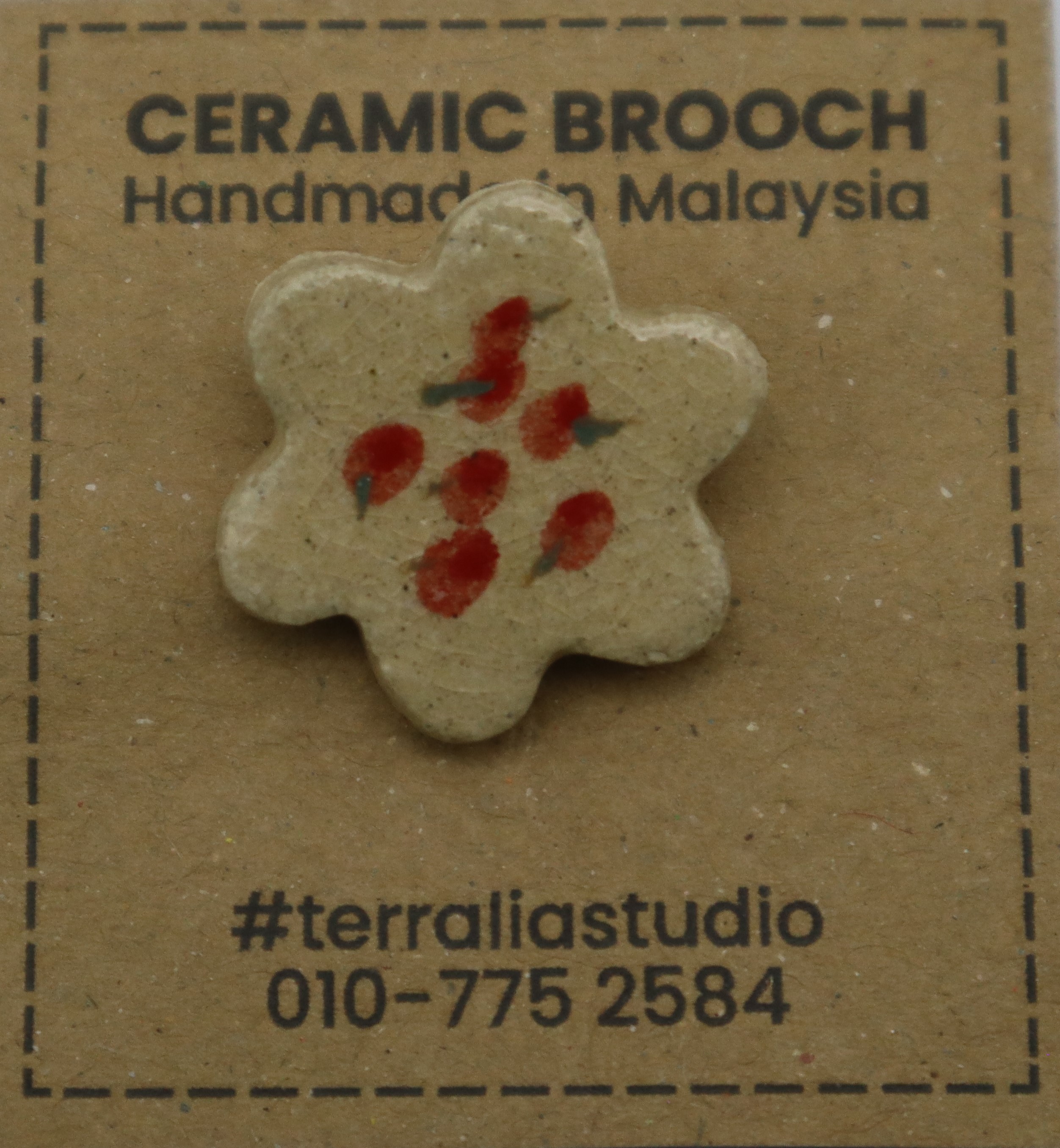 1. BAHAN DARI TANAH LIAT DIJADIKAN BROOCH BERBENTUK BUNGA DAN DIDATANGKAN DENGAN PIN