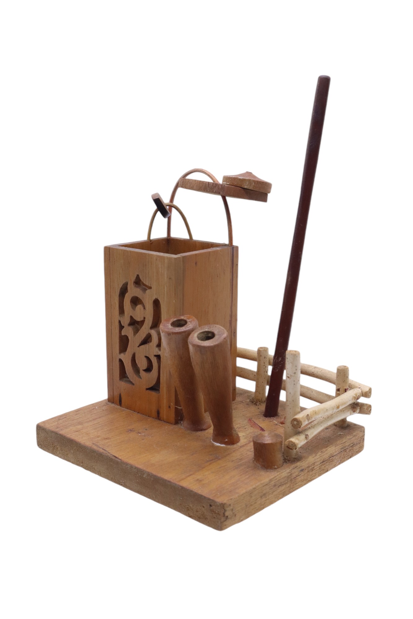 WOOD AND COCONUTSHEL DECO PEN RACK