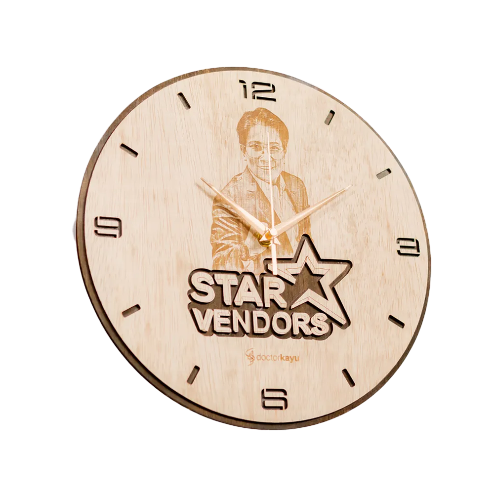 INTRODUCING THE WOODEN WALL CLOCK, A MASTERPIECE THAT COMBINES FUNCTIONALITY AND AESTHETIC APPEAL. MADE IN MALAYSIA WITH METICULOUS CRAFTSMANSHIP, THIS WALL CLOCK ADDS A TOUCH OF ELEGANCE TO ANY ROOM.