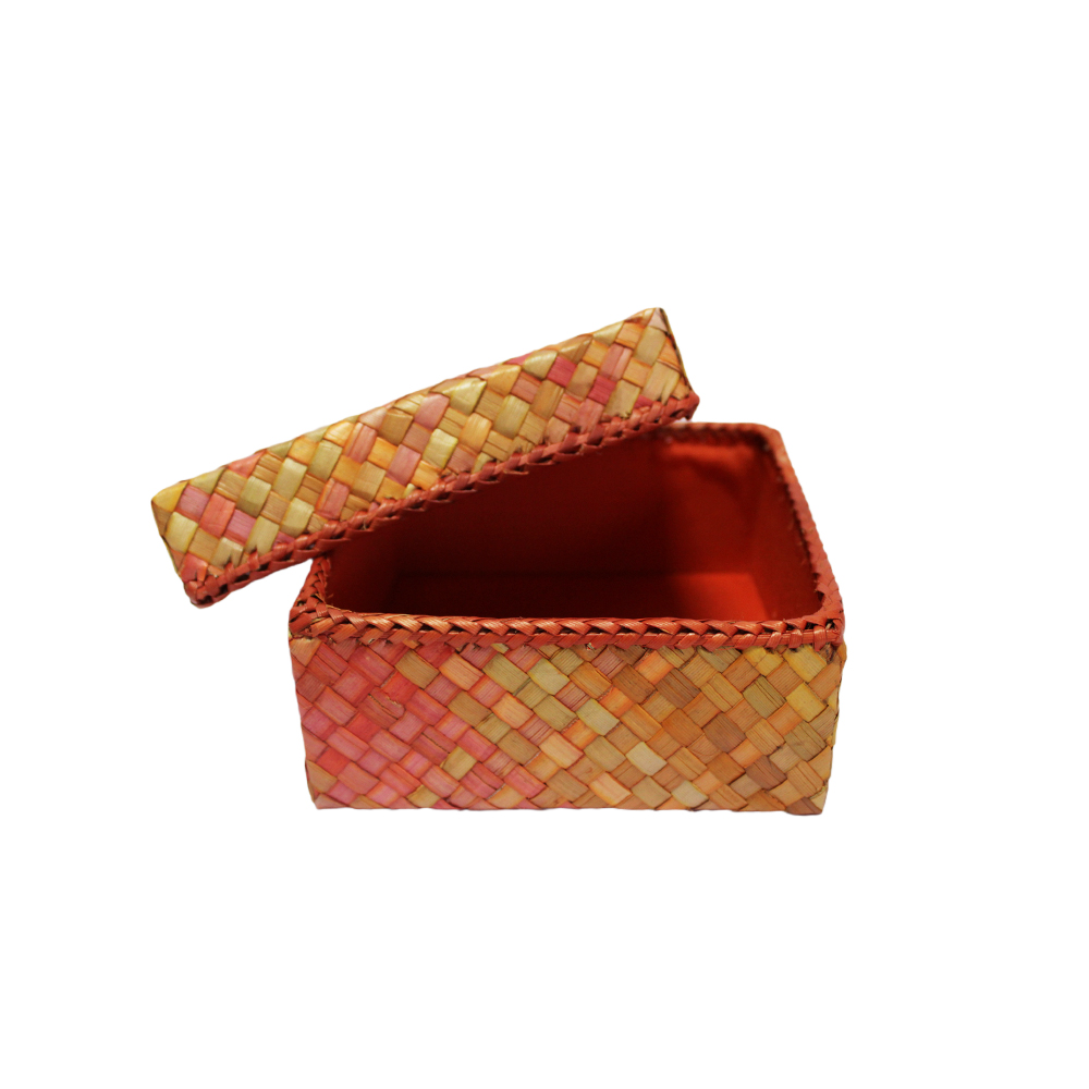 Kotak serbaguna dihasilkan dari jalinan dan anyaman bilah-bilah mengkuang (Teknik Tulan Belut)