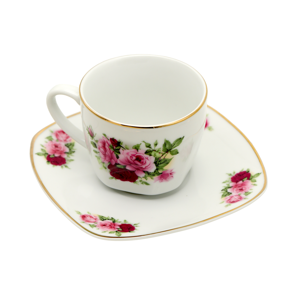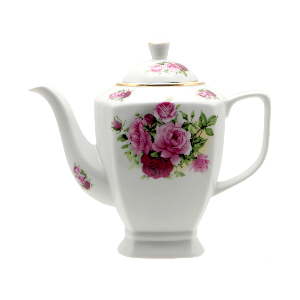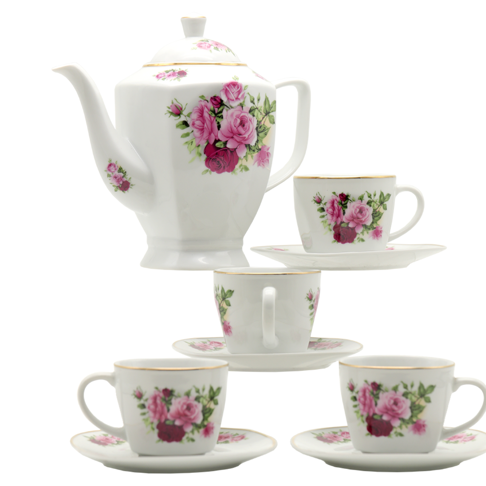 CERAMIC TEA SET ROSE WITH GOLD RIM