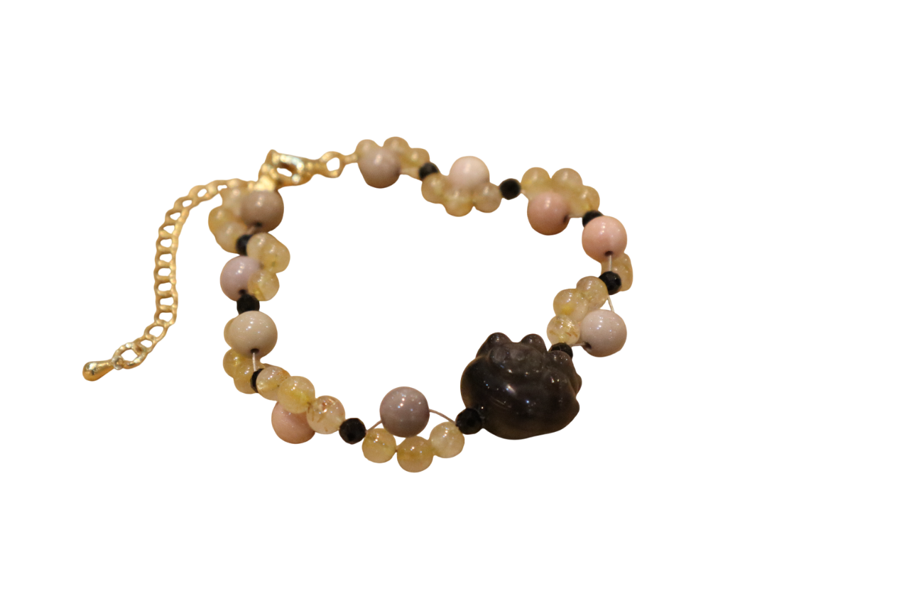 RUTILATED WITH SILVER OBSIDIAN BRACELET