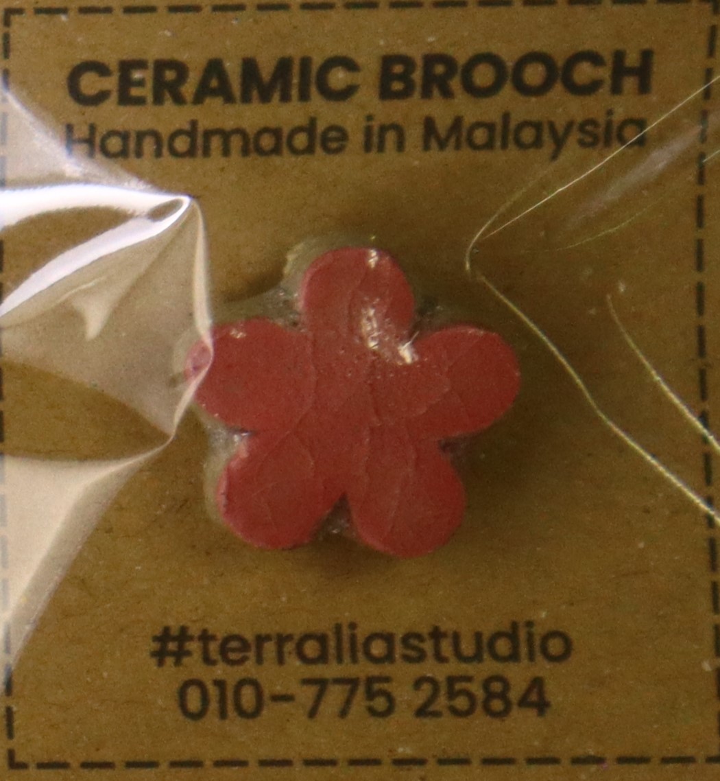 1. BAHAN DARI TANAH LIAT DIJADIKAN BROOCH BERBENTUK BUNGA DAN DIDATANGKAN DENGAN PIN