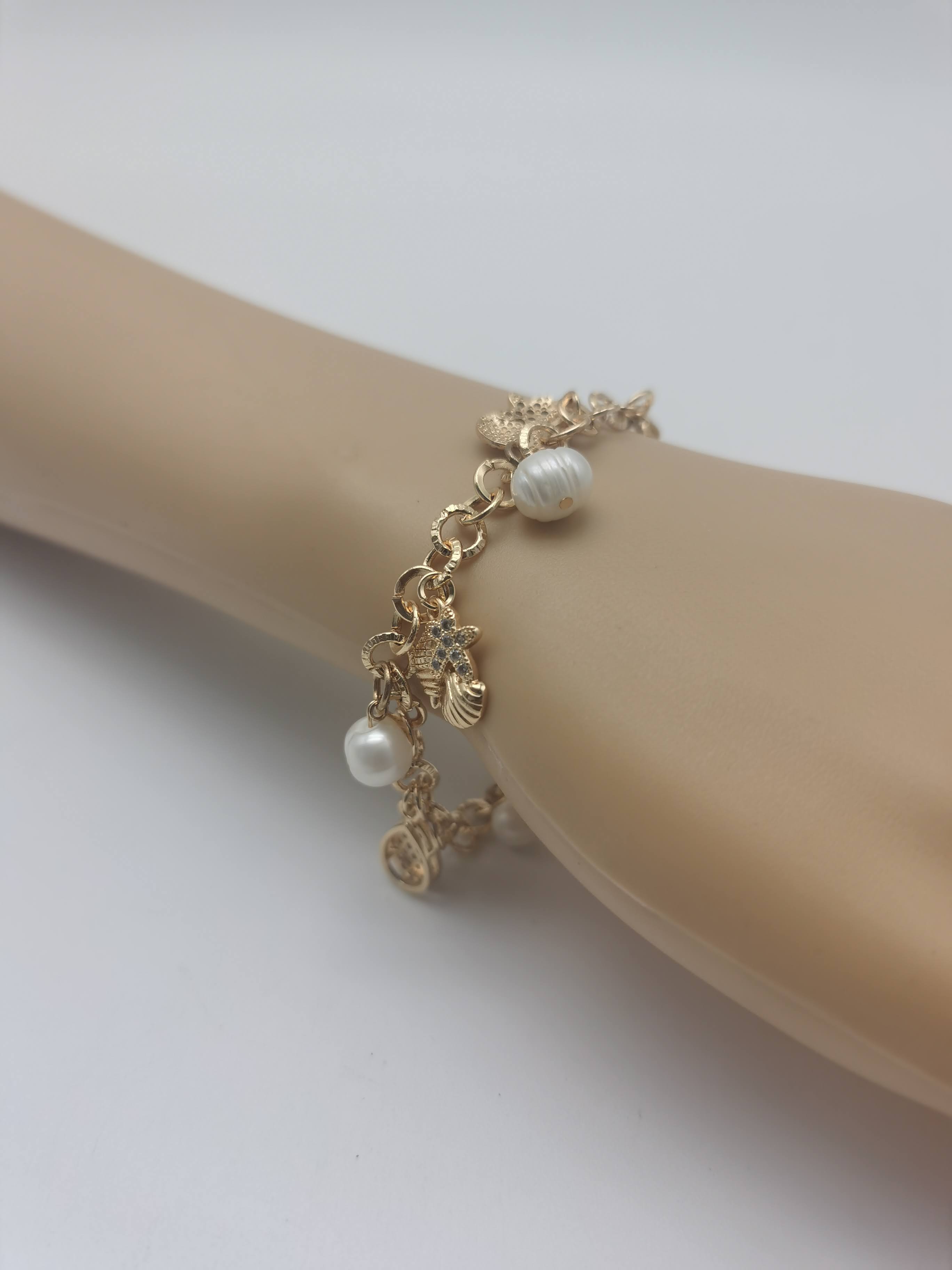 1.RANTAI TANGAN IKAT ROSEGOLD GABUNGAN TIRAM BERWARNA PUTIH DENGAN KONSEP REKAAN MODEN.