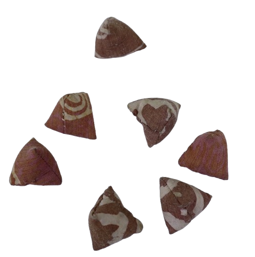 3. BEG KECIL BERZIP YANG BERBENTUK SEGITIGA DIHASILKAN DARIPADA BAHAN KAIN KAPAS BERCORAK BATIK