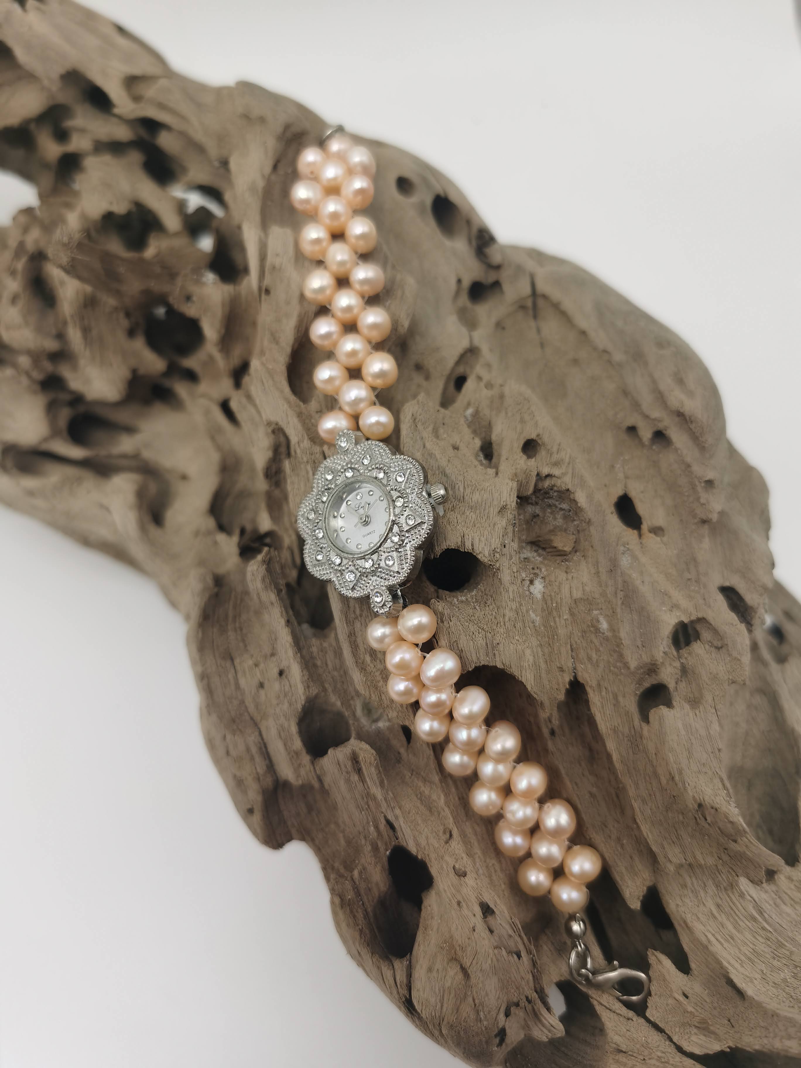 JAM TANGAN WANITA BUNGA BULAT PEACH