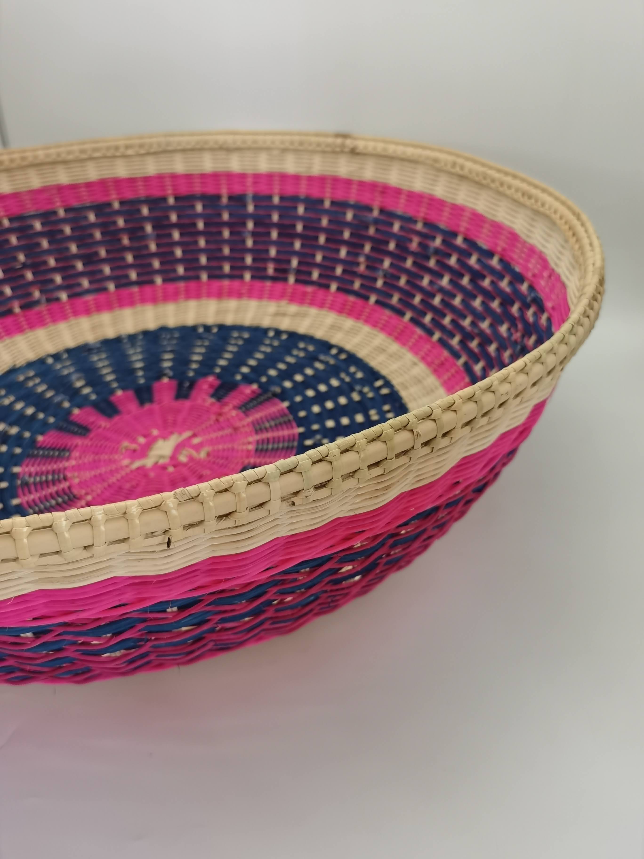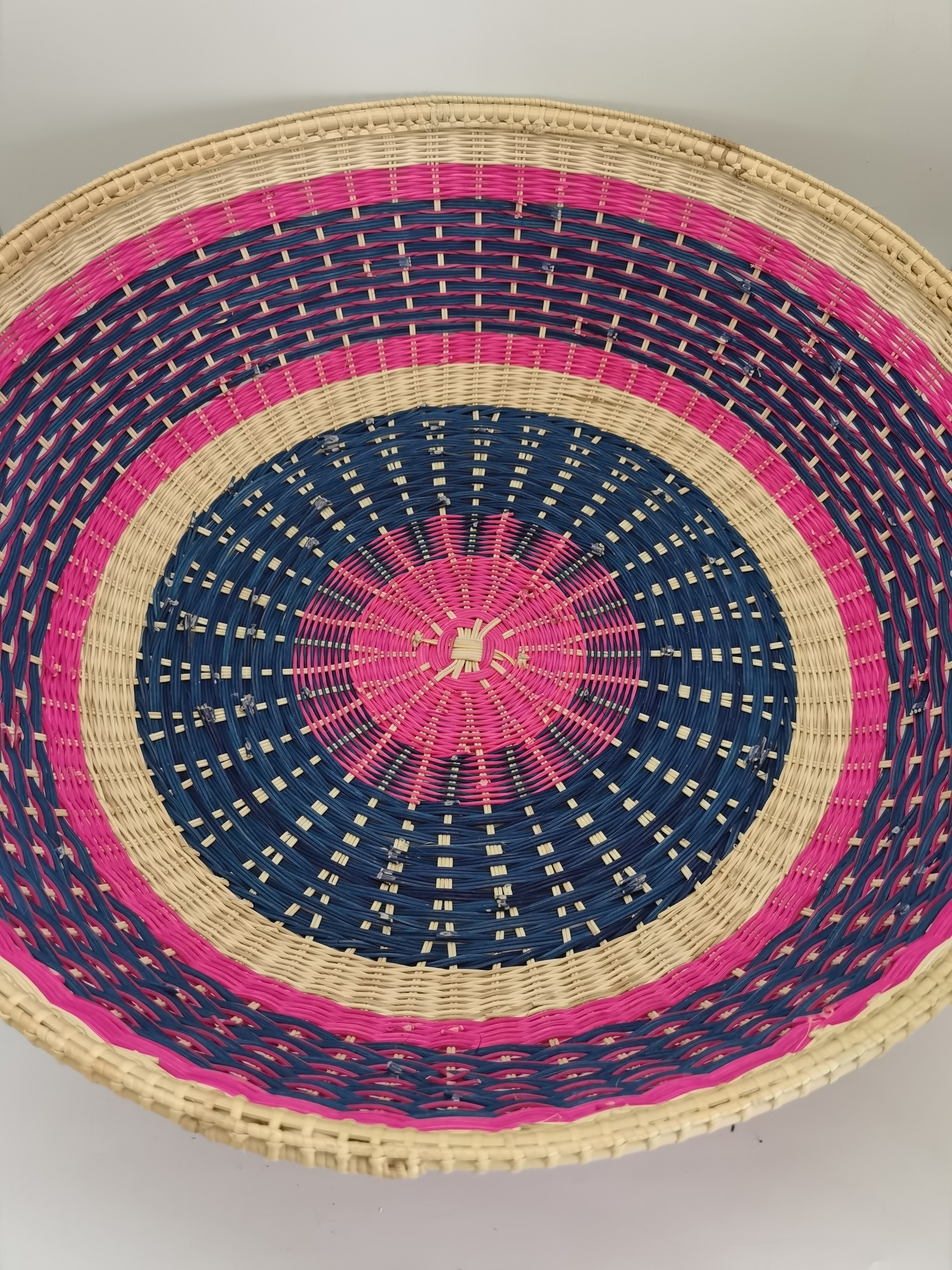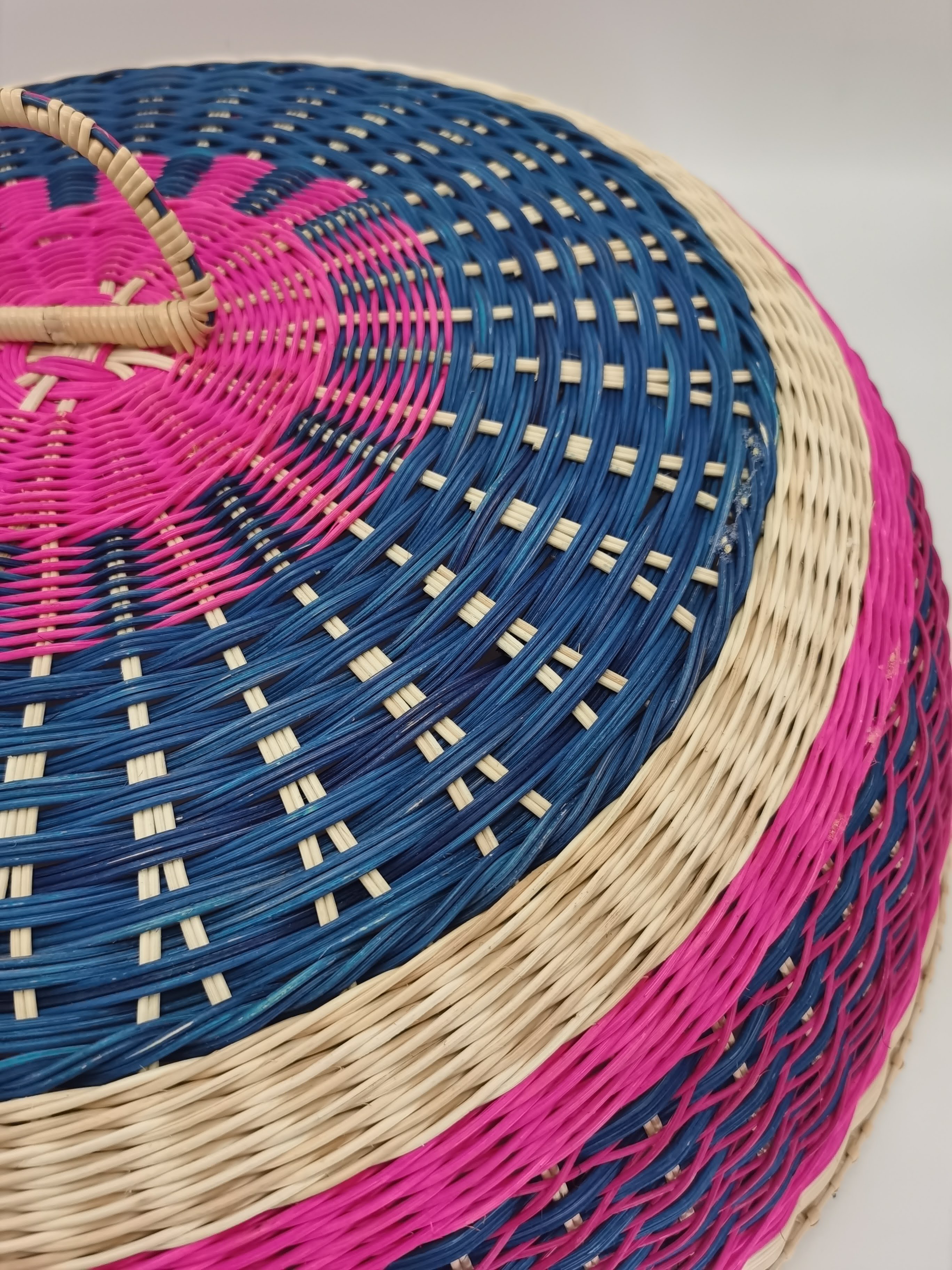 2. ANYAMAN ROTAN PULUR DENGAN GABUNGAN WARNA NATURAL, MERAH JAMBU DAN BIRU.