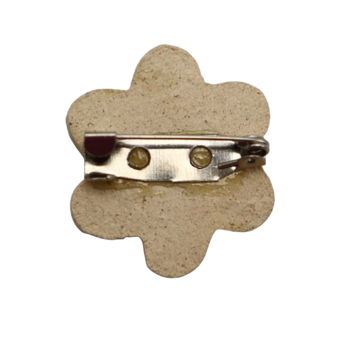 1-BAHAN DARI TANAH LIAT DIJADIKAN BROOCH BERBENTUK BUNGA DAN DIDATANGKAN DENGAN PIN.