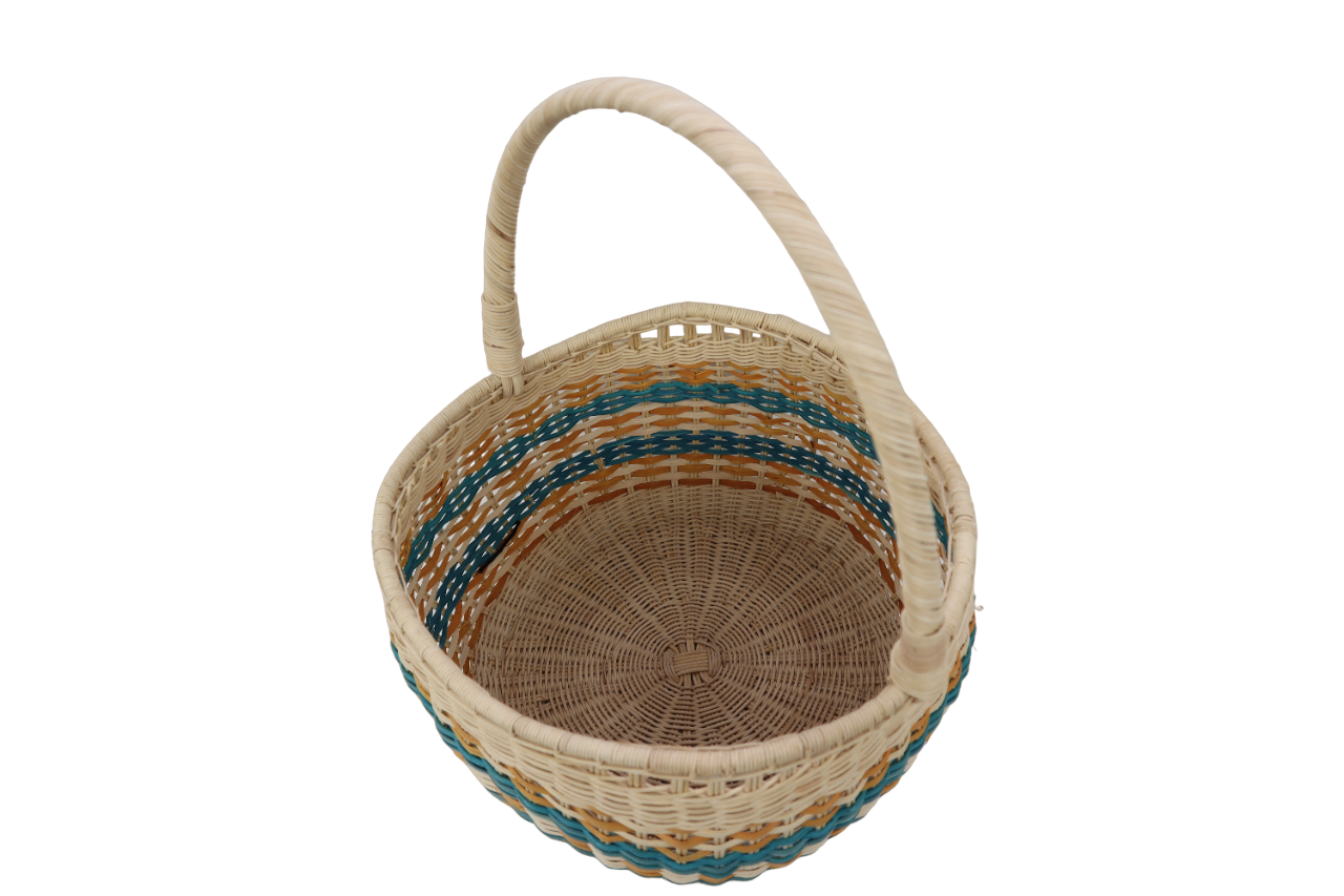 1. BAKUL YANG DIPERBUAT DARIPADA ROTAN PULUR DAN DILENGKAPI DENGAN TANGKAI, MEMPUNYAI CORAK YANG MENARIK.
