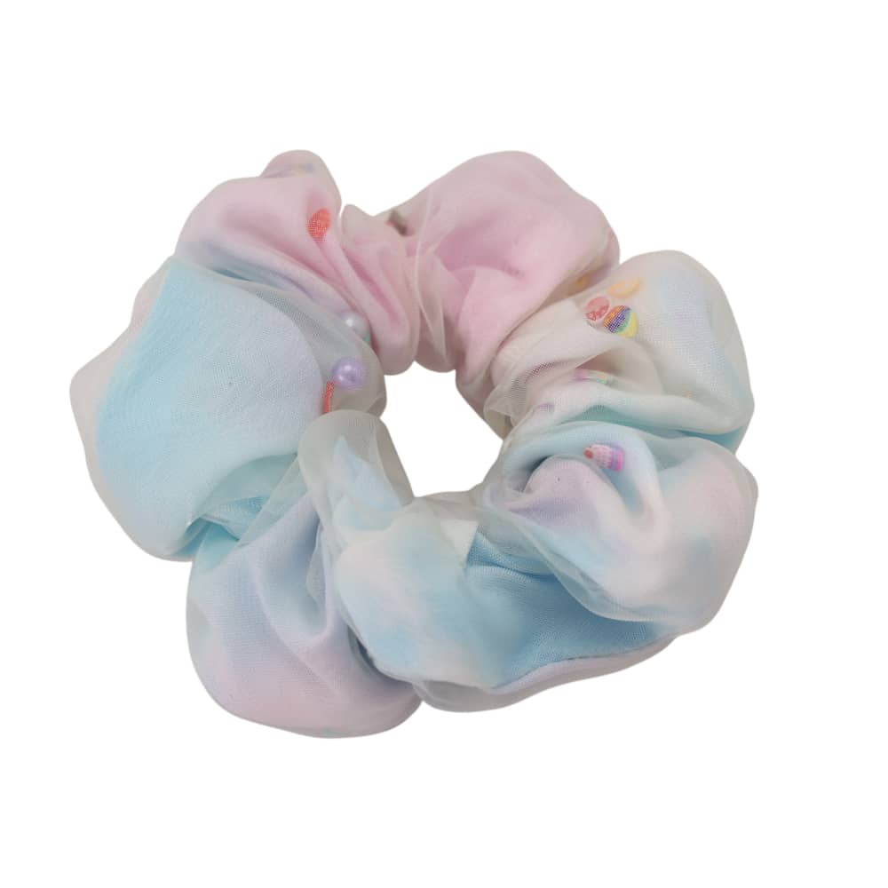 PASTEL=BEADED DOUBLE LAYER TIE DYE SCRUNCHIES WITH COTTON FABRIC ON THE FIRST LAYERS AND ORGANZA FABRIC FOR THE SECOND LAYER. THE DESIGN OF THE SCRUNCHIES THAT IS FULL AND PUFFY GIVE OFF CUTE VIBES FOR THOSE WHO WEAR IT. THE PASTEL COLOR ALSO GIVES ITS WEARER SWEET AND ETHEREAL LOOK.