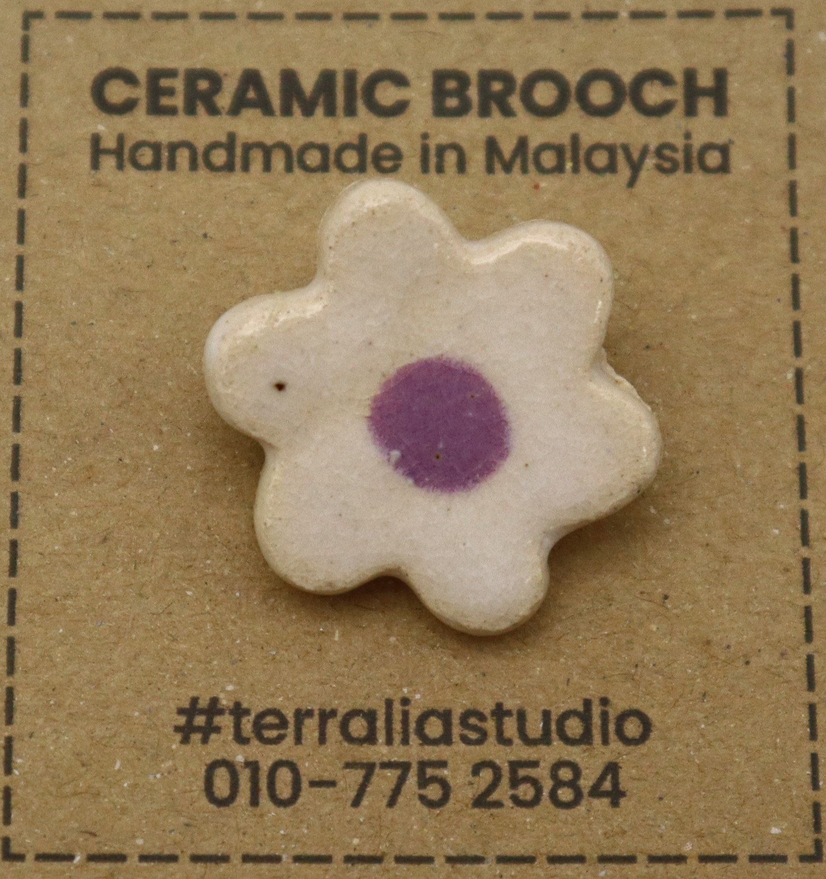 1-BAHAN DARI TANAH LIAT DIJADIKAN BROOCH BERBENTUK BUNGA DAN DIDATANGKAN DENGAN PIN.