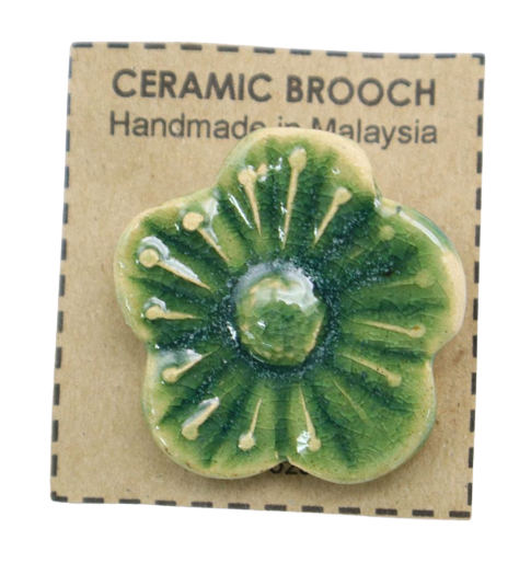 1. BAHAN DARI TANAH LIAT DIJADIKAN BROOCH BERBENTUK BUNGA DAN DIDATANGKAN DENGAN PIN