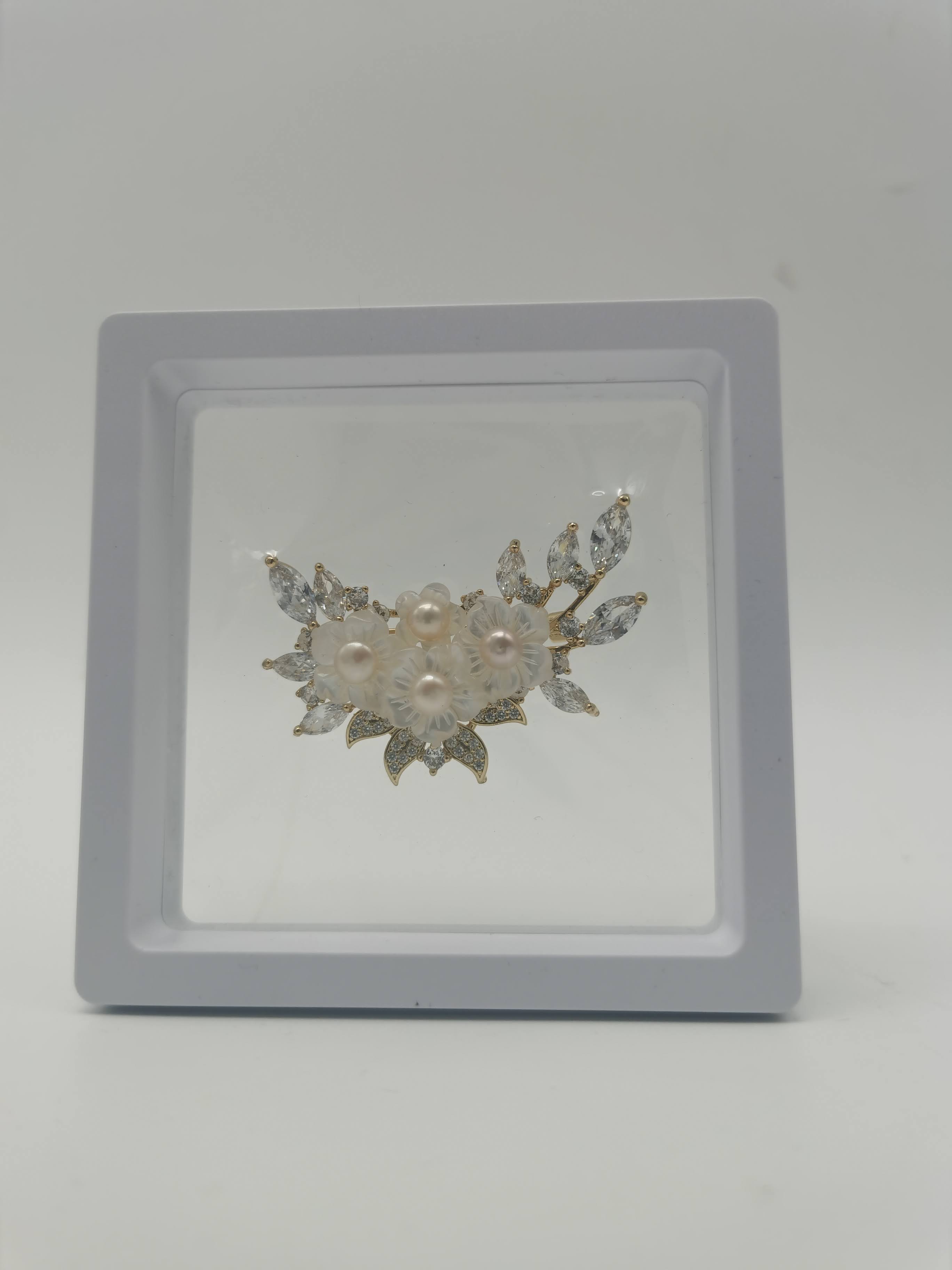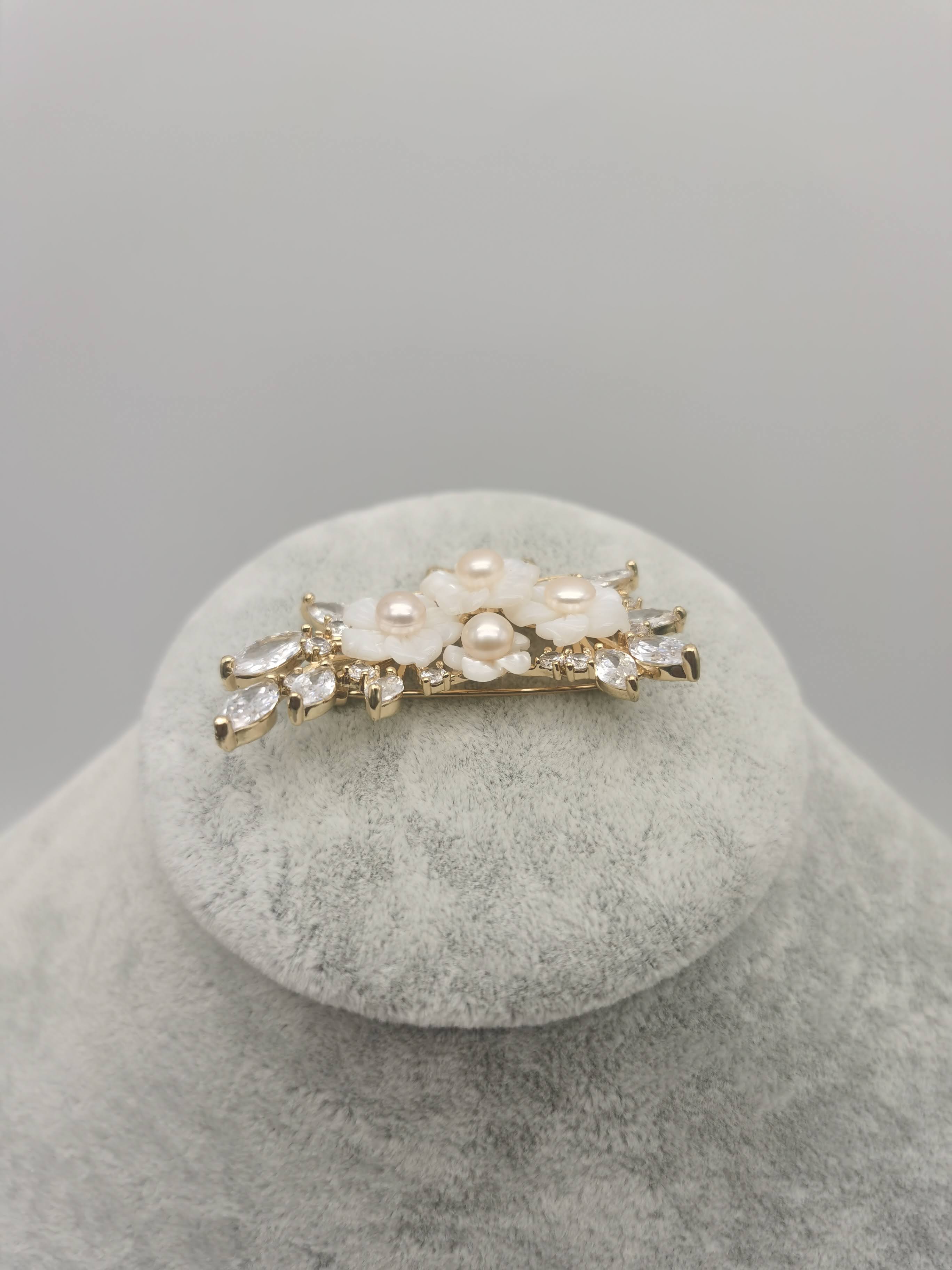 BROOCH ZIRCON MOTHER PEARL ROSEGOLD