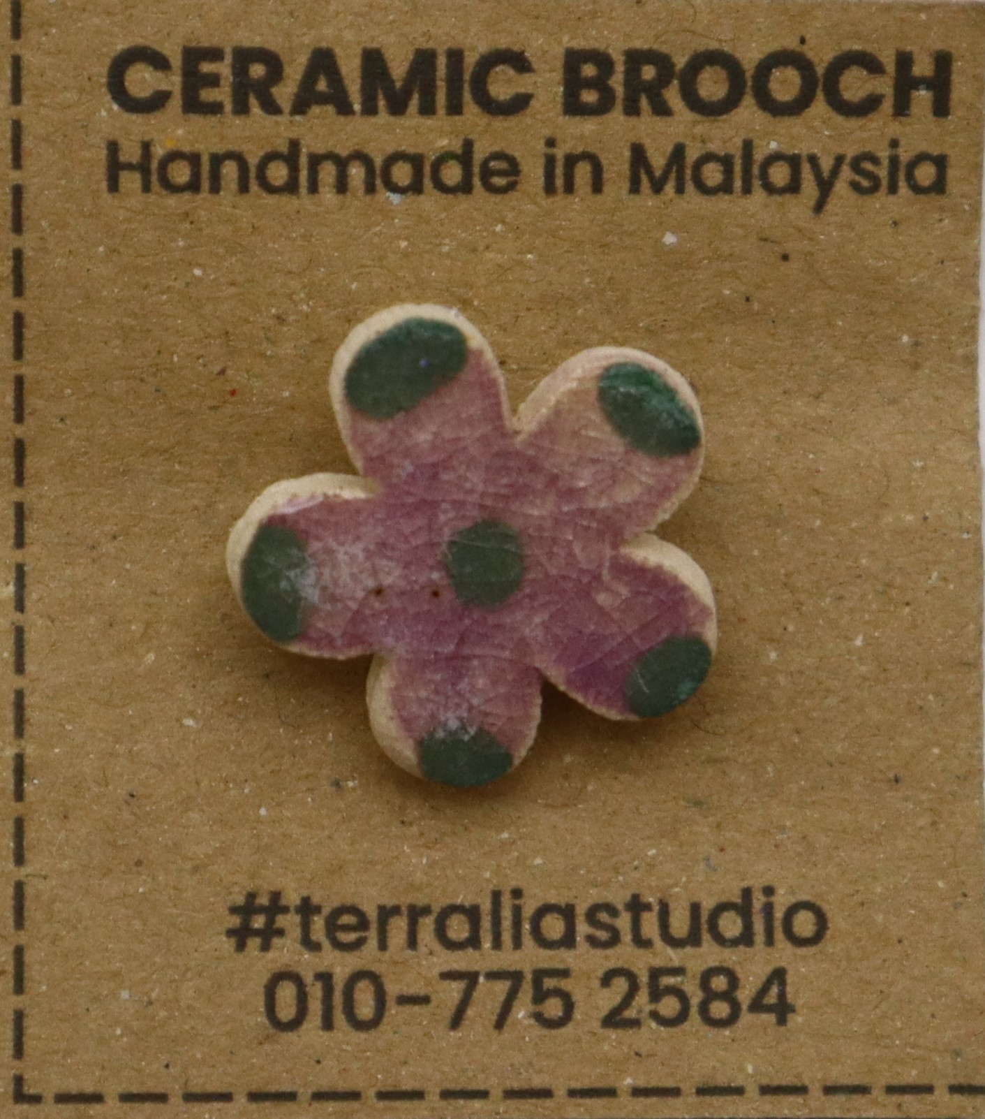 1. BAHAN DARI TANAH LIAT DIJADIKAN BROOCH BERBENTUK BUNGA DAN DIDATANGKAN DENGAN PIN