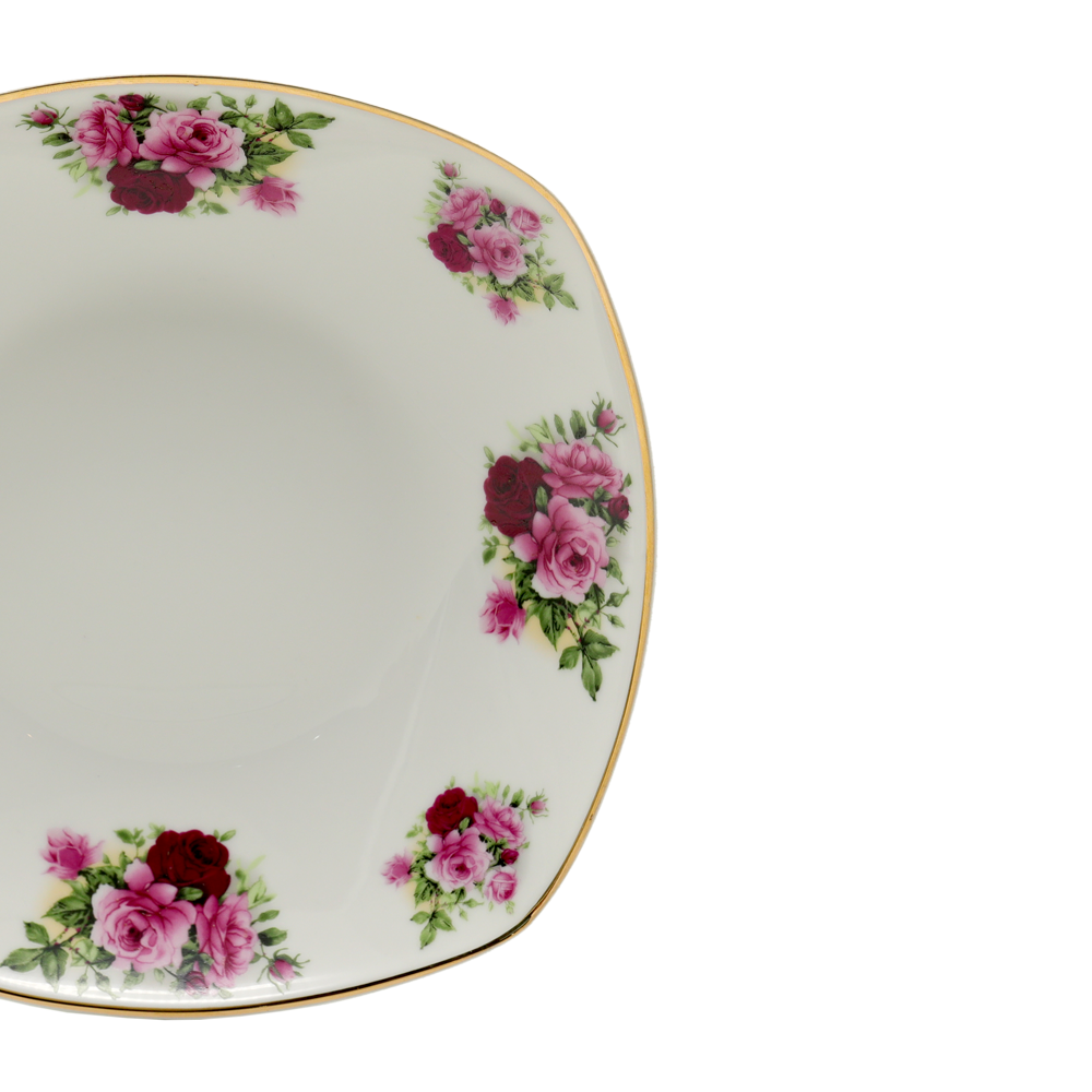 CERAMIC DINNER SET 7 PCS ROSE WITH GOLD RIM