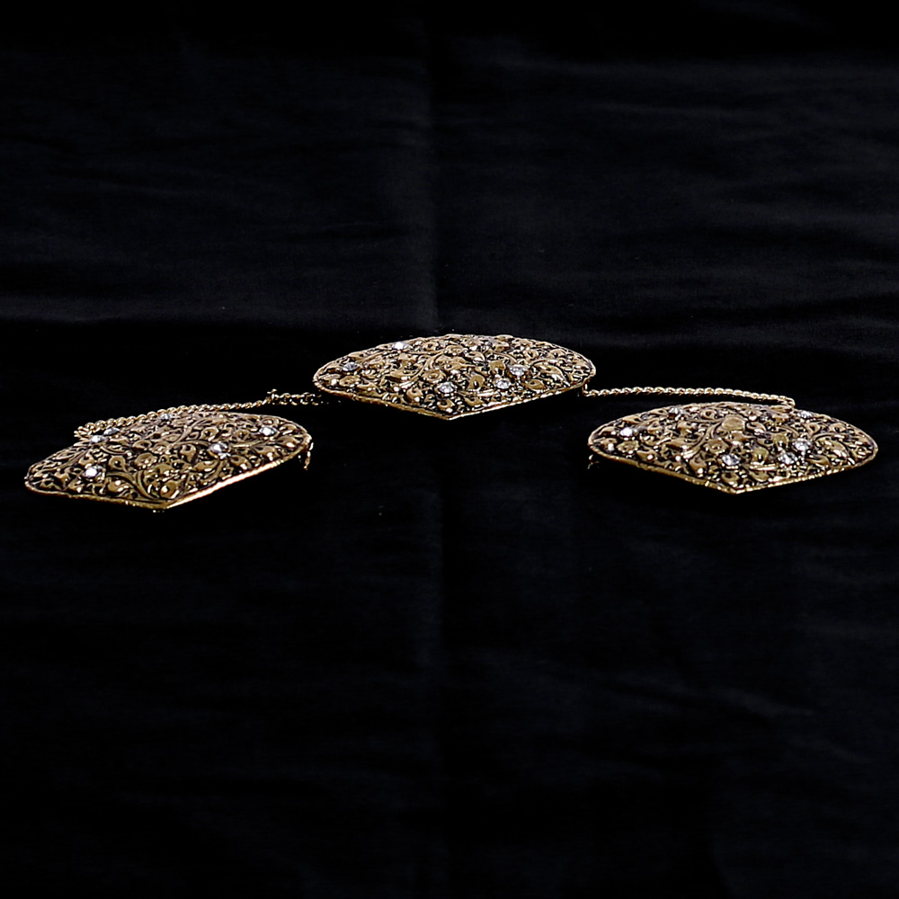 2. PEWTER 24 K GOLD PLATED WITH SWAROSKI CRYSTAL ANTIQUE FINISHED