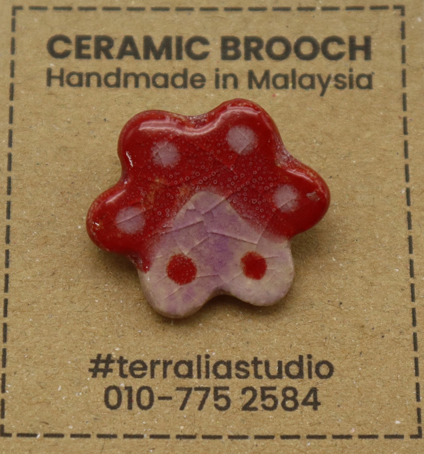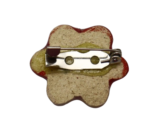 1-BAHAN DARI TANAH LIAT DIJADIKAN BROOCH BERBENTUK BUNGA DAN DIDATANGKAN DENGAN PIN.