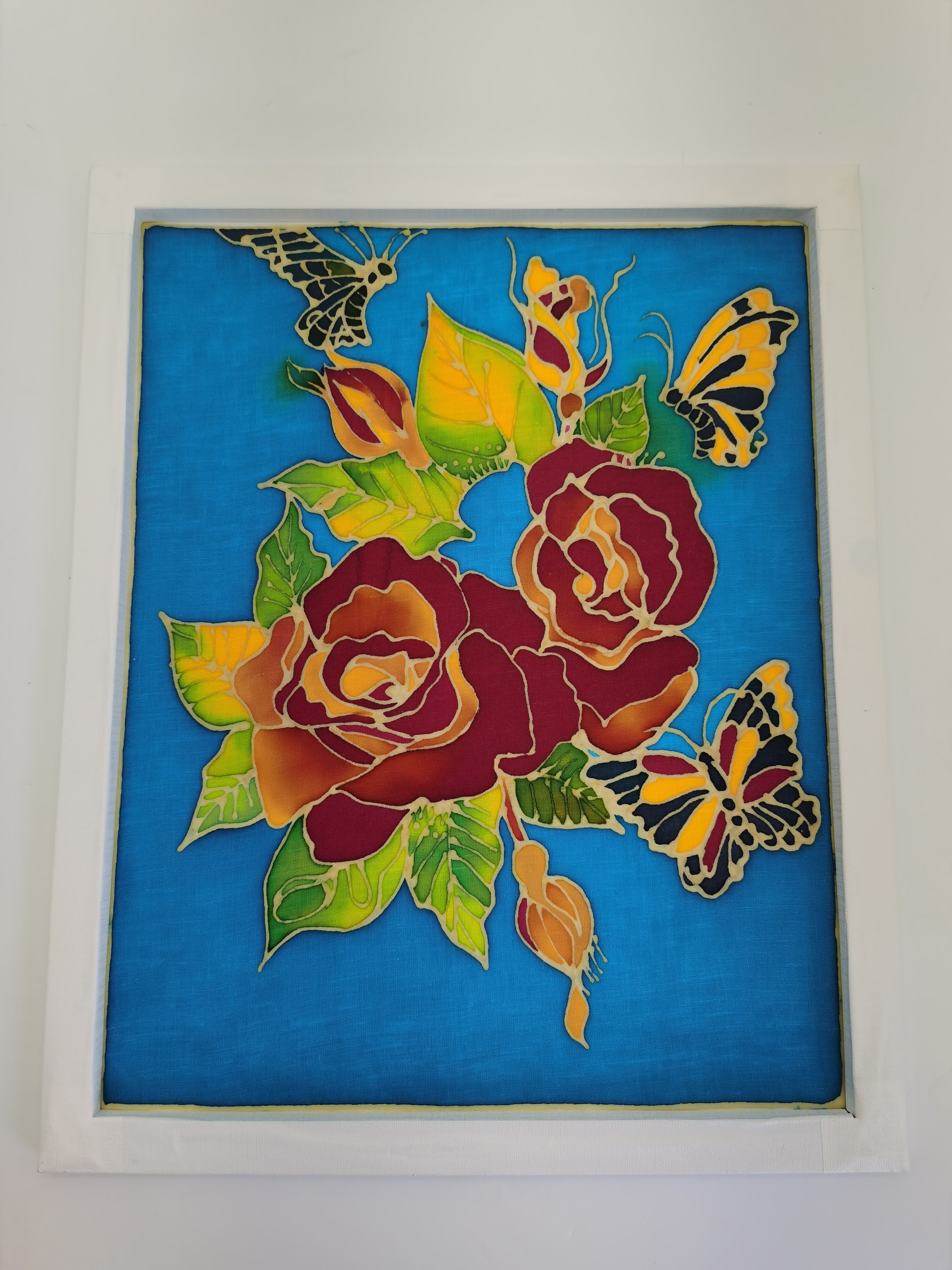 LUKISAN BATIK HIASAN DINDING - BUNGA DAN RAMA-RAMA