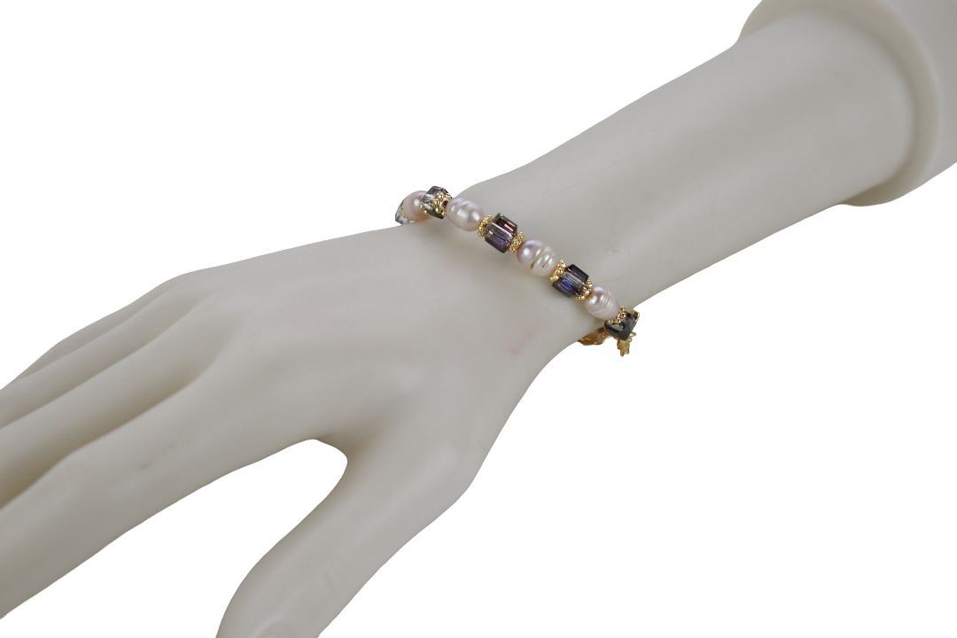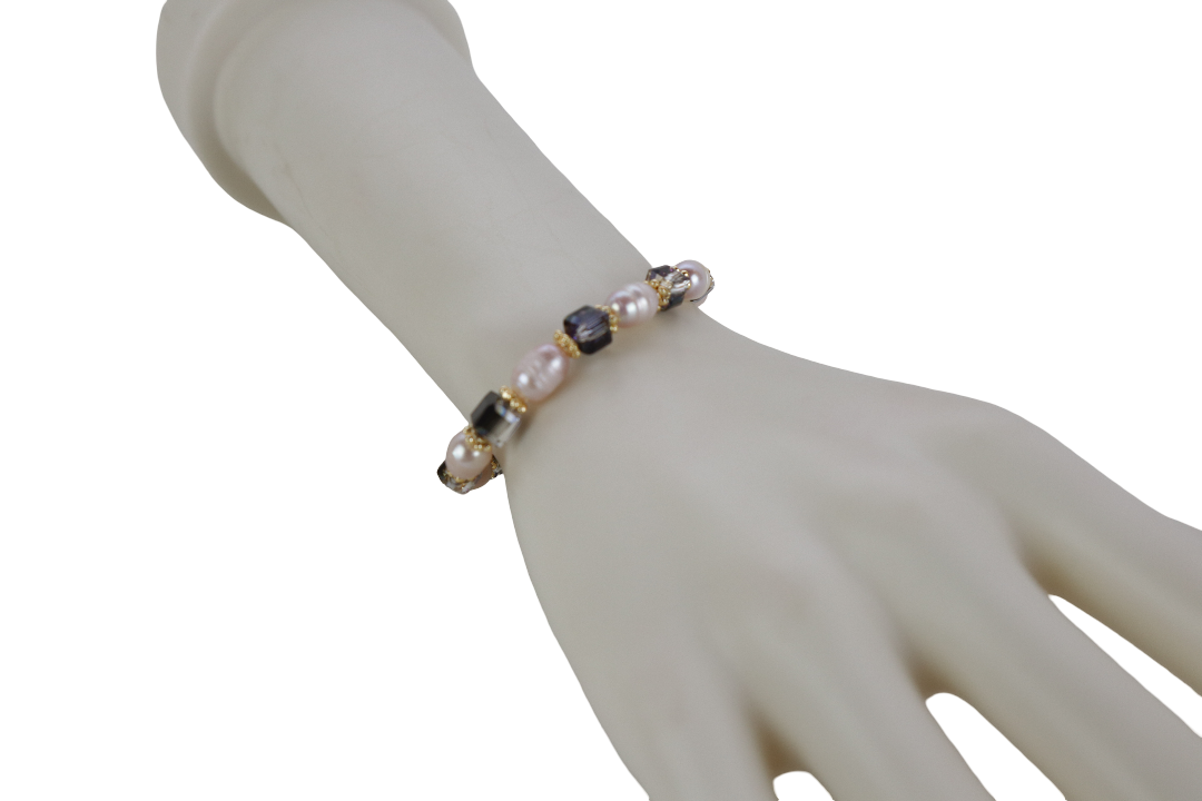 1. RANTAI TANGAN WANITA YANG DIPERBUAT DARI MUTIARA AIR MASIN/MANIK DENGAN KRISTAL BUJUR PUTIH