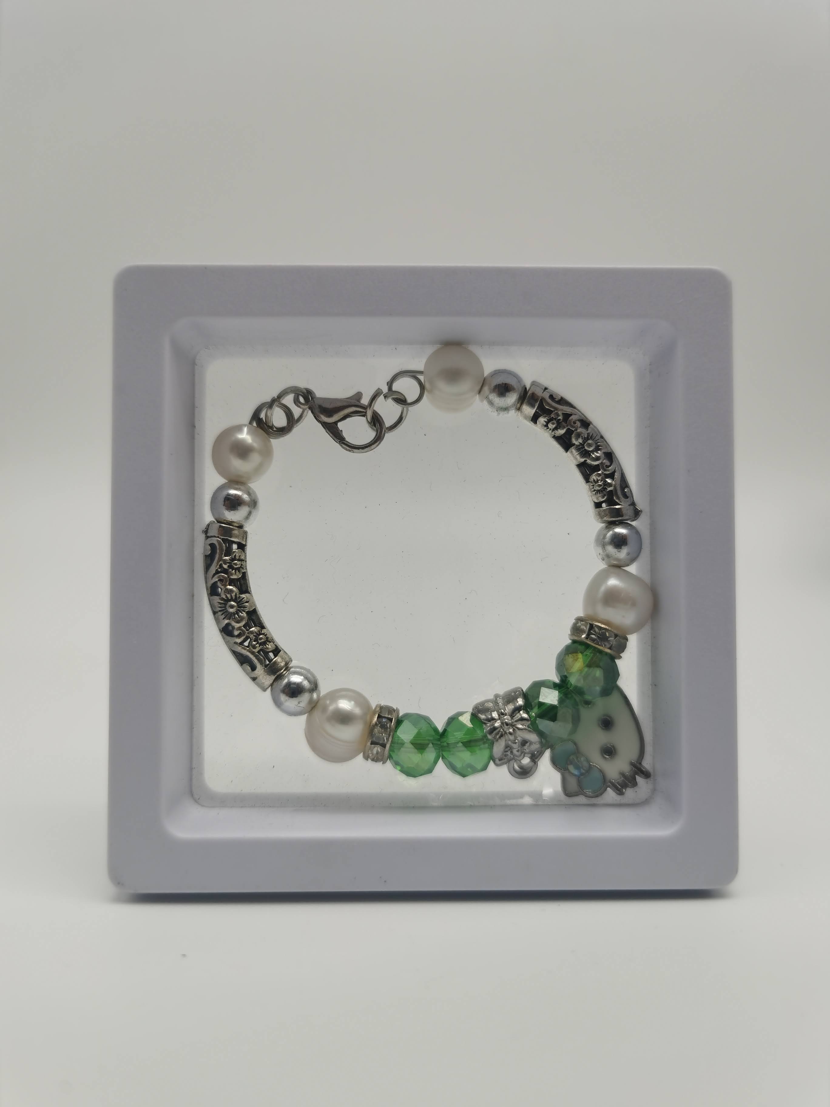 1. GELANG KANAK-KANAK ALA PANDORA, MUTIARA BERWARNA PUTIH DAN MANIK HIJAU