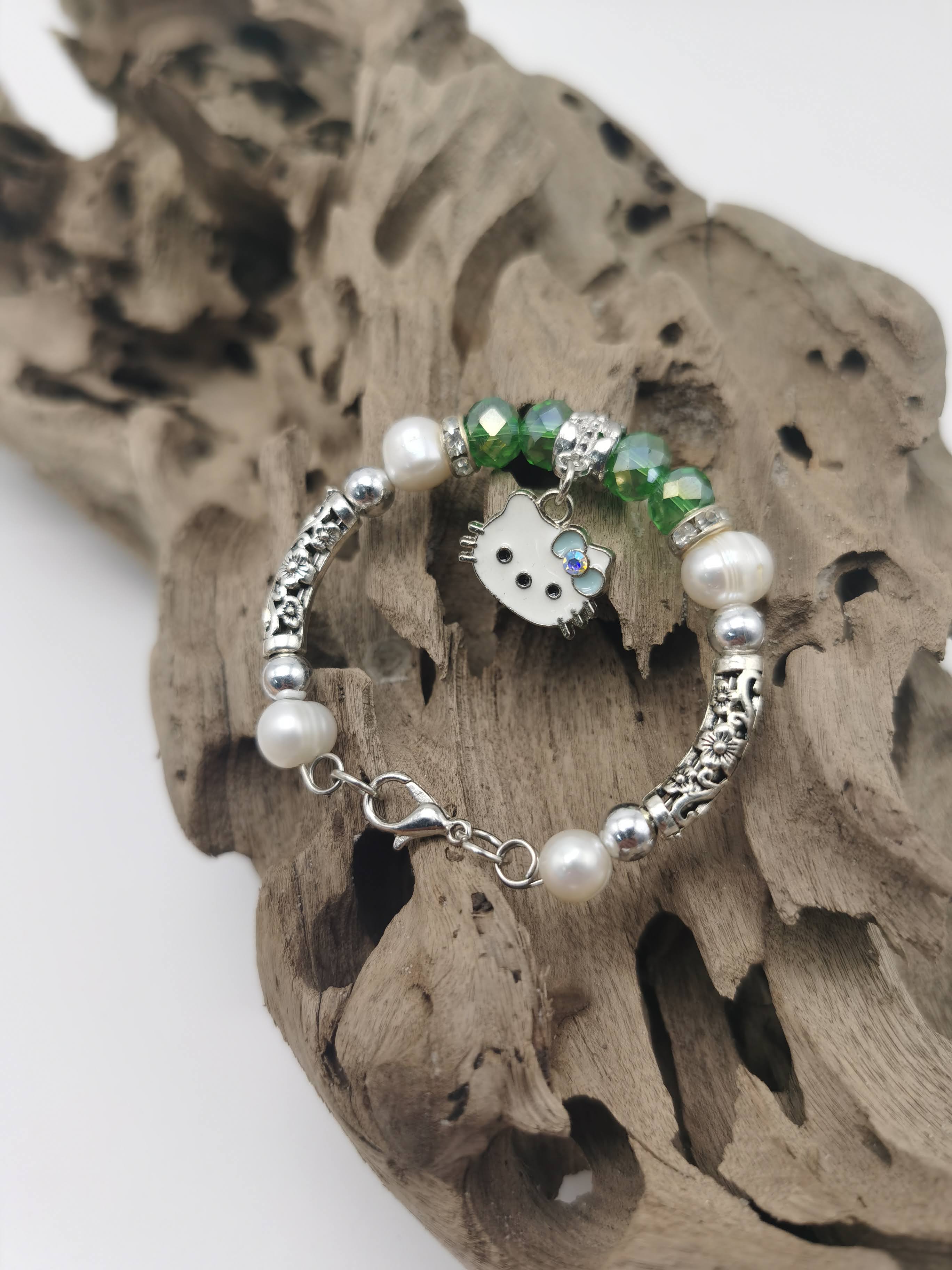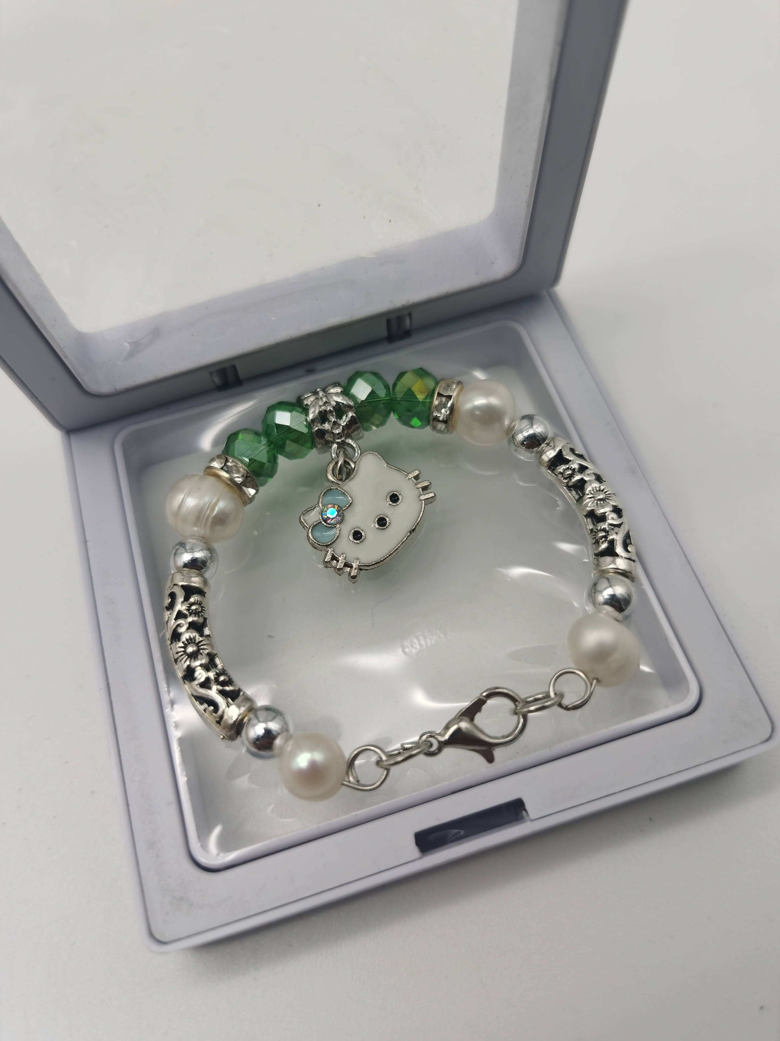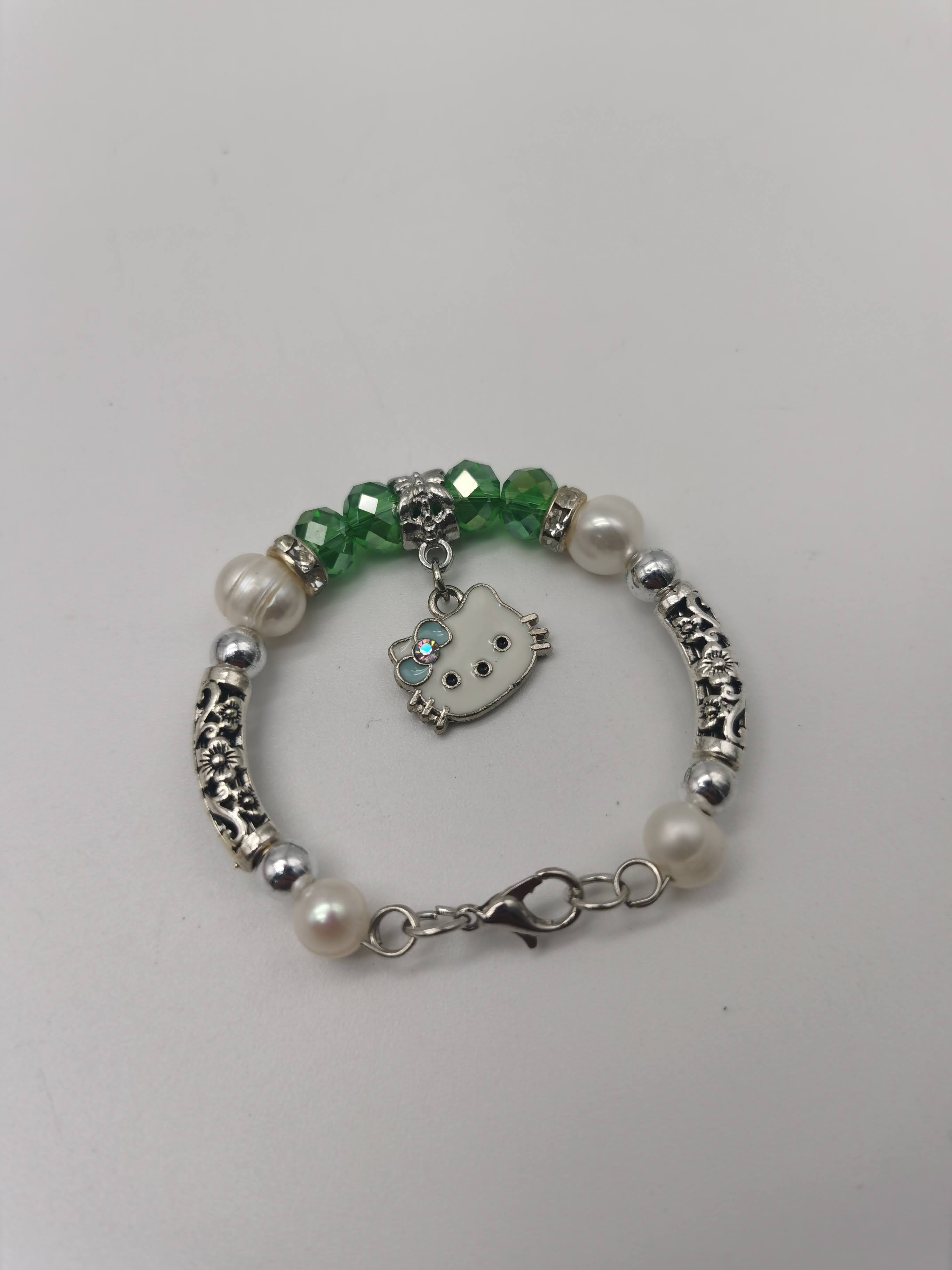 GELANG ALA PANDORA BUDAK HELLO KITTY HIJAU