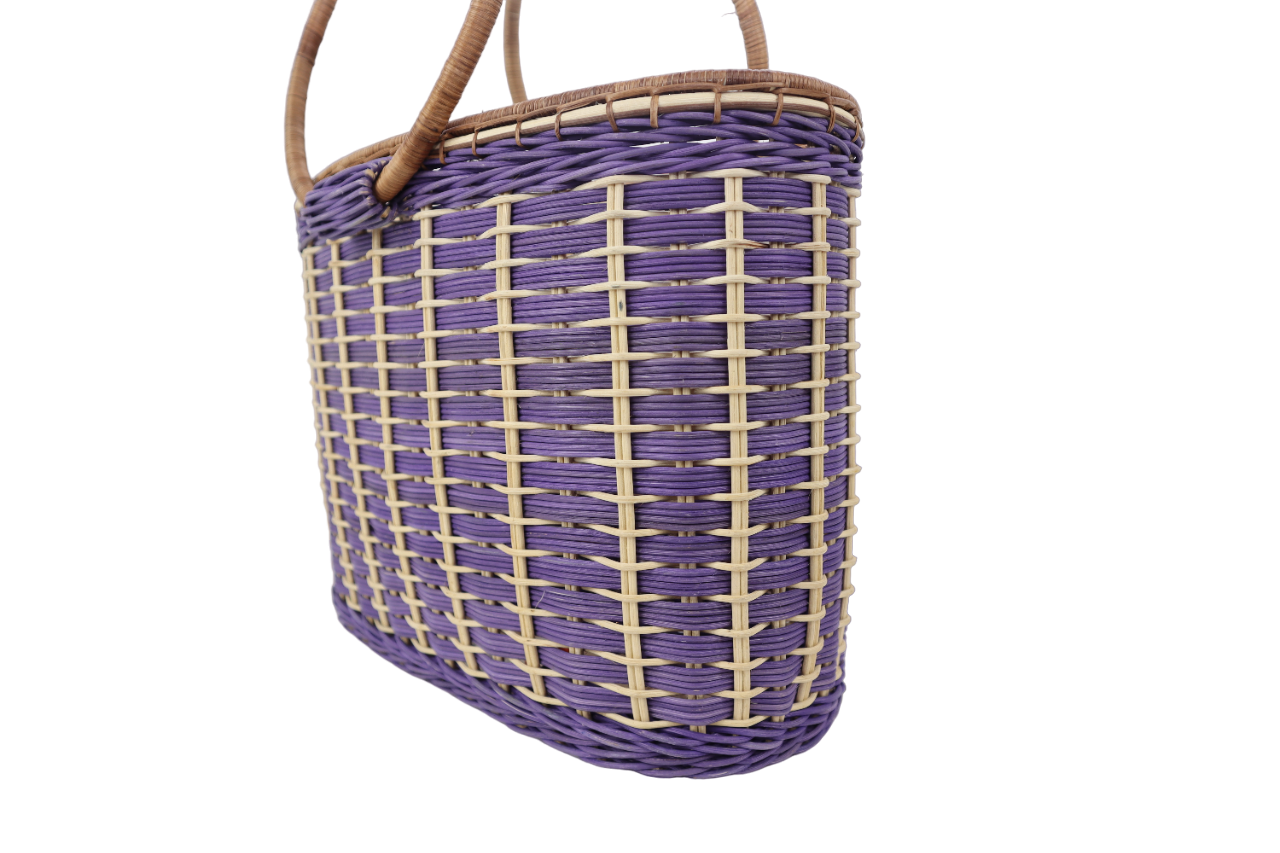 1. BAKUL YANG DIPERBUAT DARIPADA ROTAN PULUR DAN DILENGKAPI DENGAN TANGKAI, MEMPUNYAI CORAK YANG MENARIK.