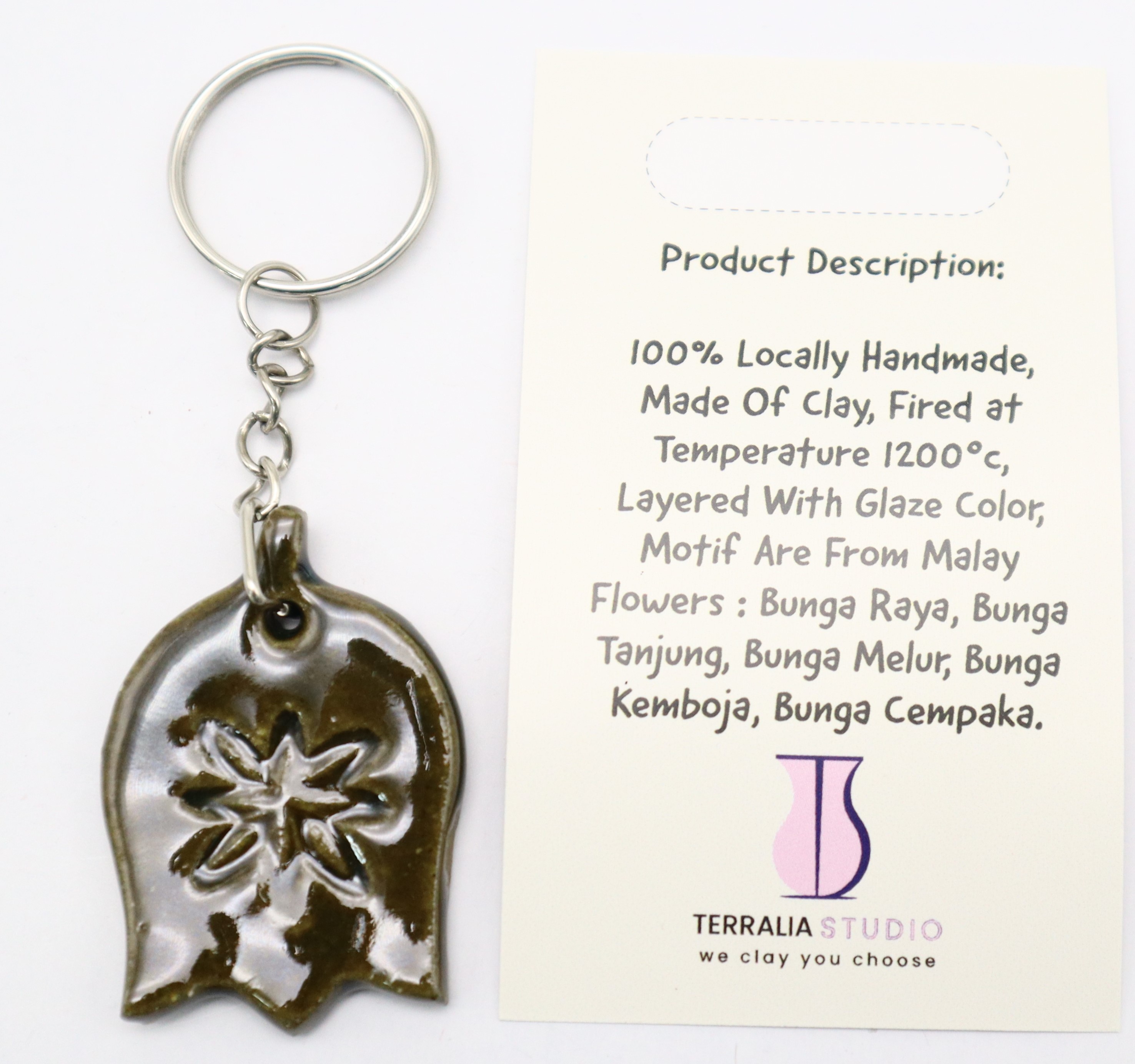 1. BAHAN DARI TANAH LIAT DIJADIKAN PENDANT DAN DIDATANGKAN DENGAN RANTAI KUNCI