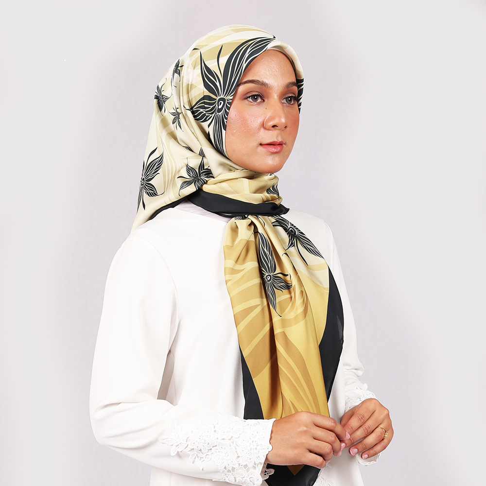 FLORAL MOTIF (MUSTARD, BLACK&WHITE) SCARF