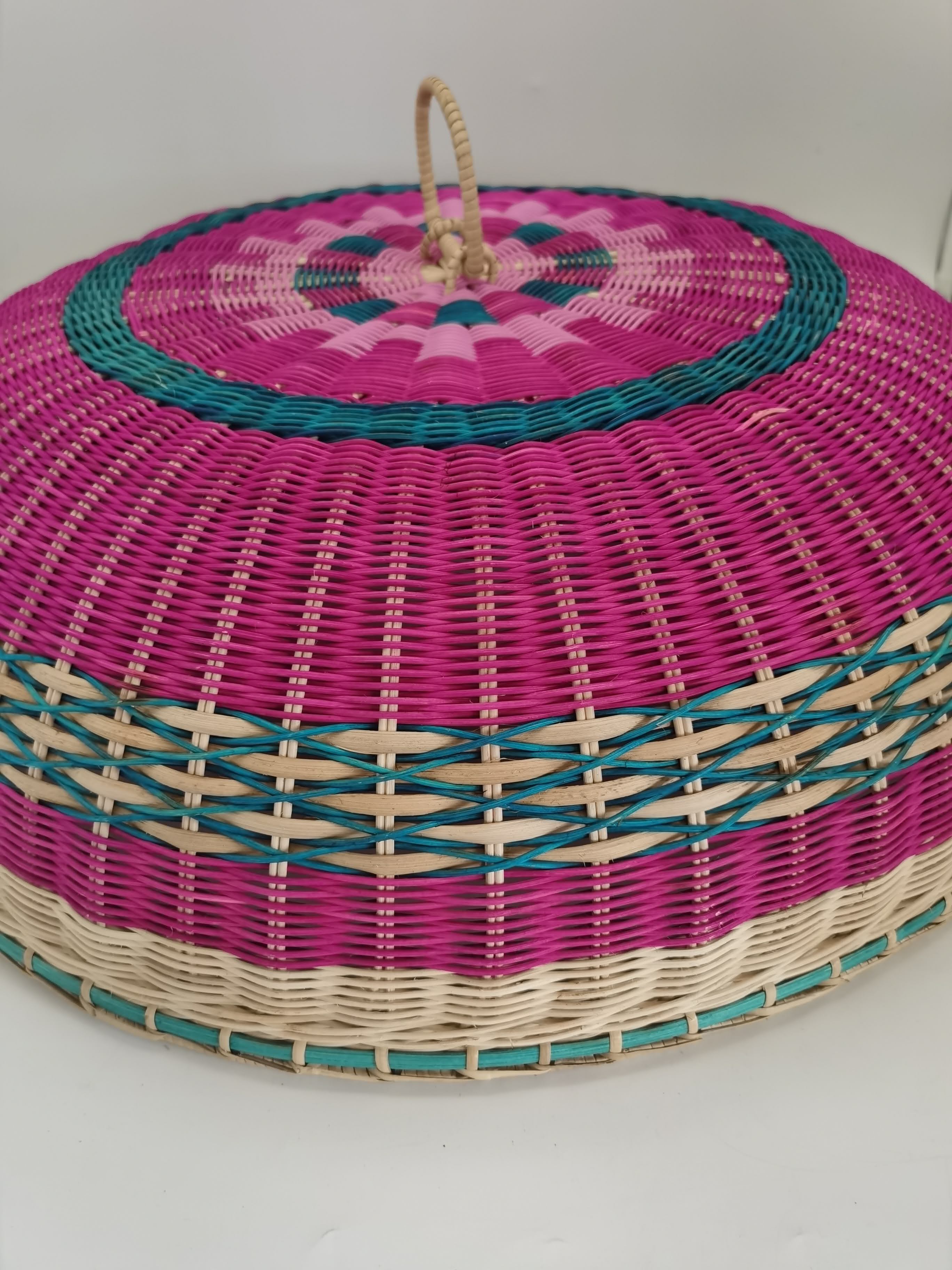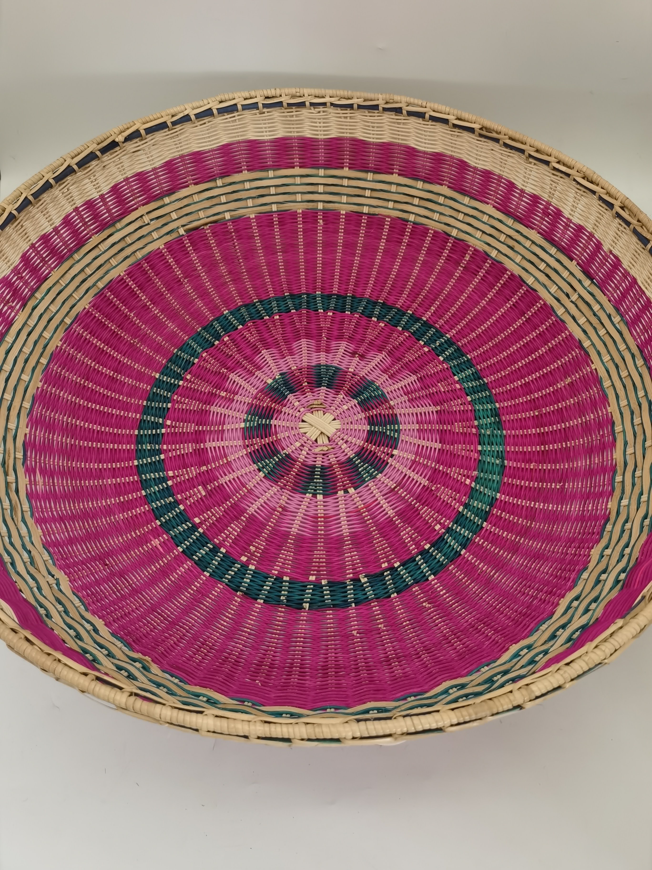 2. ANYAMAN ROTAN PULUR DENGAN GABUNGAN WARNA NATURAL, MERAH JAMBU DAN BIRU.