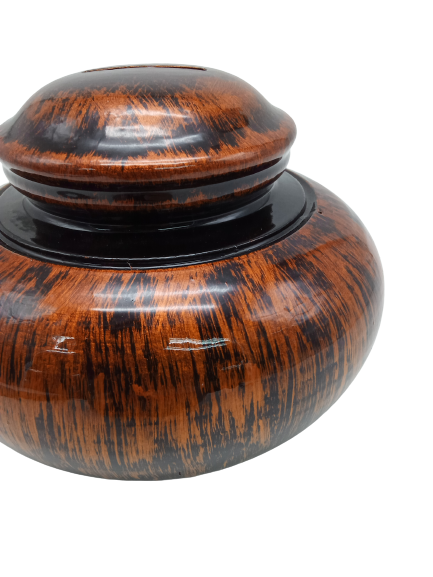 BAHAN DARI TANAH LIAT, DIADUN MEMBENTUK PASU YANG DIOLAH MENJADI TABUNG SIMPANAN WANG SYILING YANG BOLEH DIBUKA DI BAWAH.