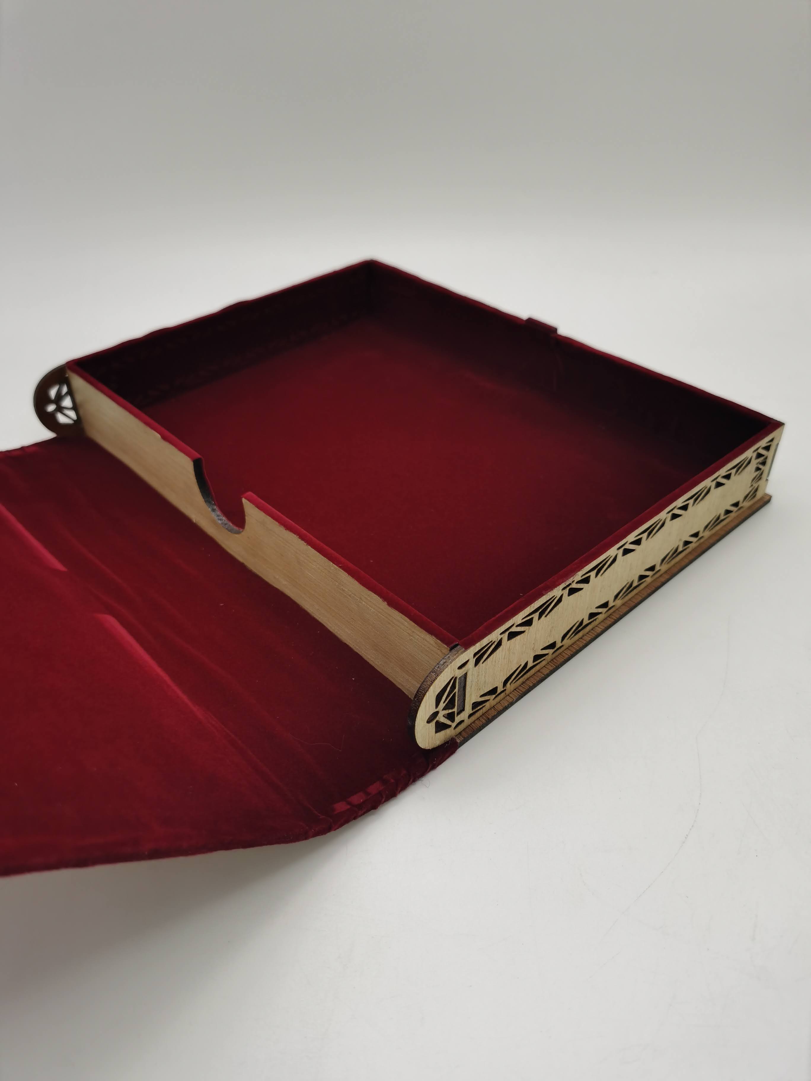 | BUTIRAN PRODUK: 1. KOTAK MENYIMPAN AL-QURAN 2. ALAS KAIN BALDU MERAH DIBAHAGIAN DALAM 3. MEMPUNYAI UKIRAN TEBUK TEMBUS PADA BAHAGIAN PENUTUP. UKURAN: 4.8 CM TINGGI 23 CM PANJANG 28.5 CM LEBAR KETERANGAN PRODUK:1. BOLEH DIJADIKAN SEBAGAI CENDERAMATA 2. MENGELAKKKAN KEROSAKKAN PADA BAHAGIAN KULIT ALQURAN |