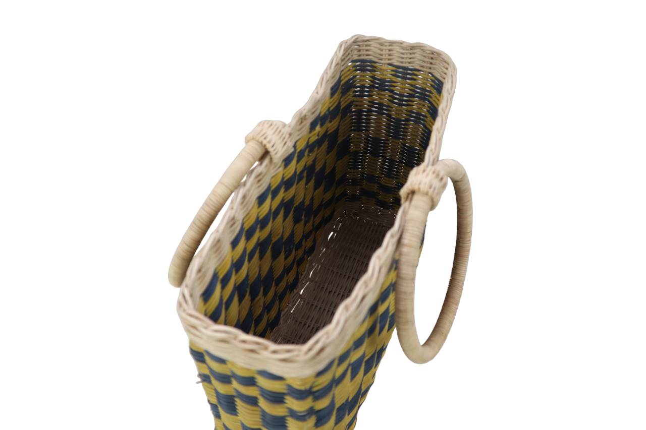 BAKUL YANG DIPERBUAT DARIPADA ROTAN PULUR DAN DILENGKAPI DENGAN TANGKAI,