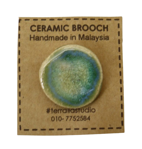 1. BAHAN DARI TANAH LIAT DIJADIKAN BROOCH BERBENTUK BULAT DAN DIDATANGKAN DENGAN PIN