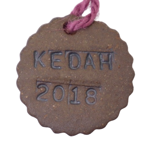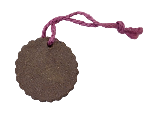 1. BAHAN DARI TANAH LIAT DIJADIKAN PENDANT BERBENTUK BULAT DAN DIDATANGKAN DENGAN RANTAI KUNCI
