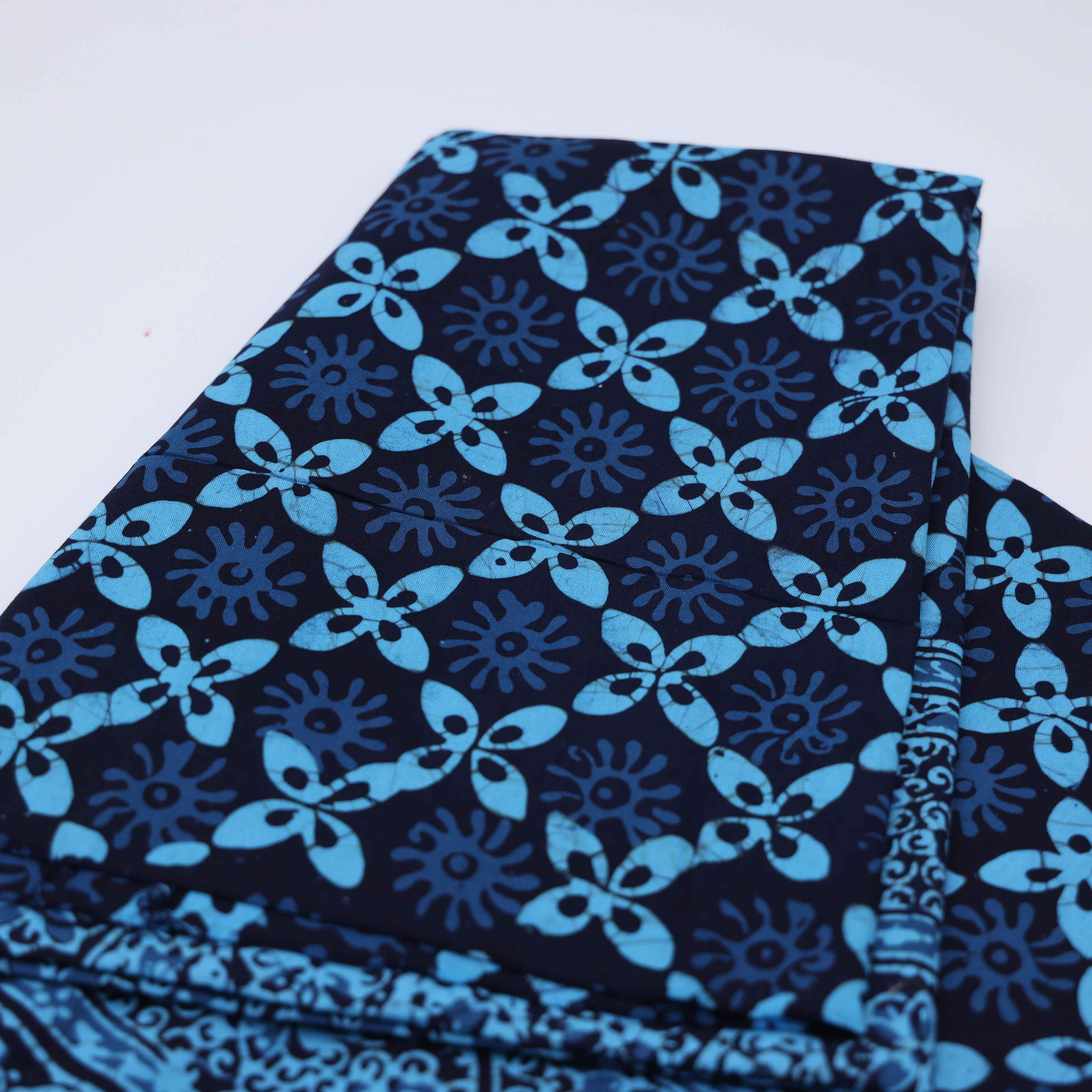 BLOCK STAMPING IS A REPEATED PROCESS OF APPLYING THE WAX WITH A METAL OR WOODEN BLOCK AND STAMPING IT ONTO THE CLOTH.