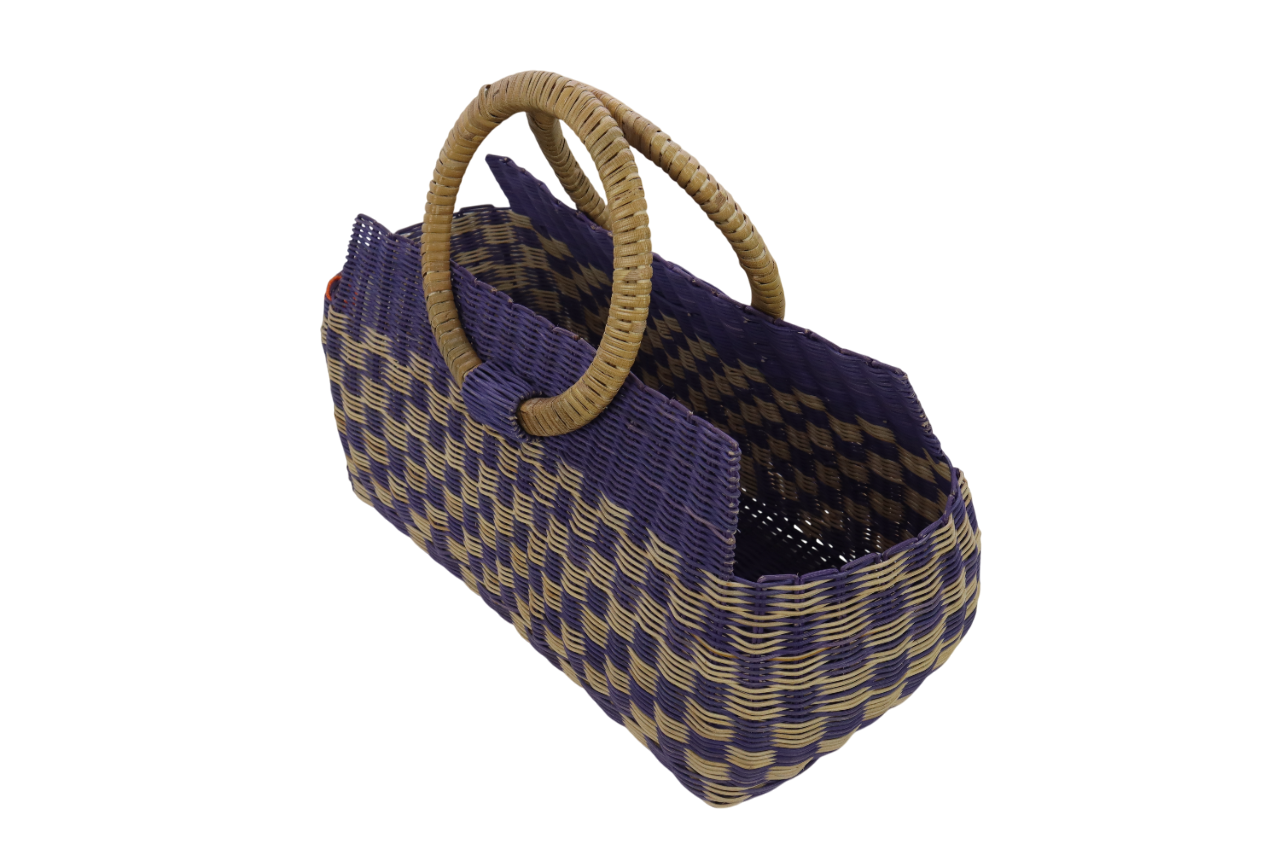 1.BAKUL YANG DIPERBUAT DARIPADA ROTAN PULUR DAN DILENGKAPI DENGAN TANGKAI, MEMPUNYAI CORAK YANG MENARIK.